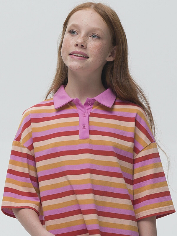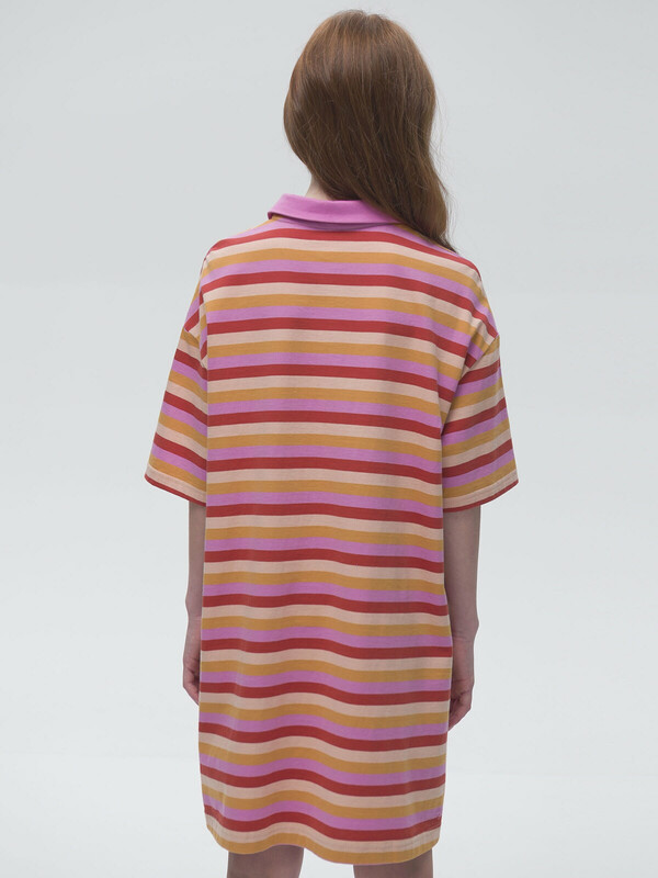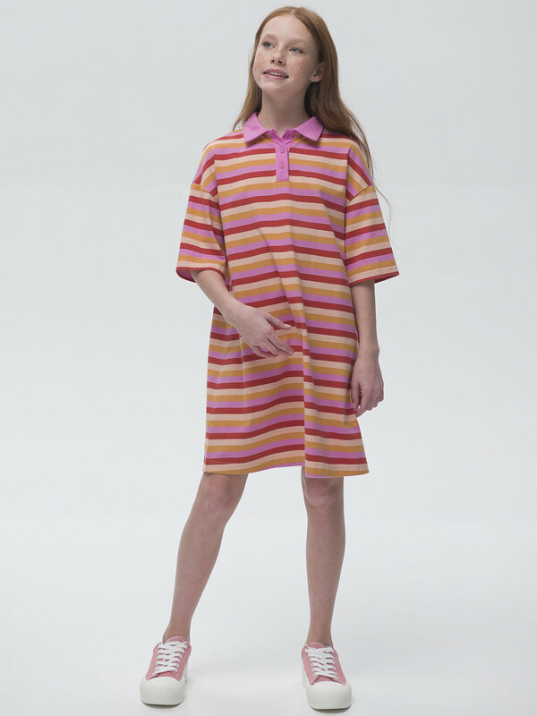 Платье оверсайз-силуэта для девочки. Платье с воротником-поло, прямого кроя и спущенным рукавом идеально подойдёт для создания спортивных и повседневных образов. В составе ткани 100%, поэтому модель комфортная, приятная на ощупь, в ней не будет жарко летом. Ткань проста в уходе. Модный оверсайз-силуэт позволяет носить платье долго. Эта модель идеально сядет на девочку любой фигуры, можно покупать без примерки.
