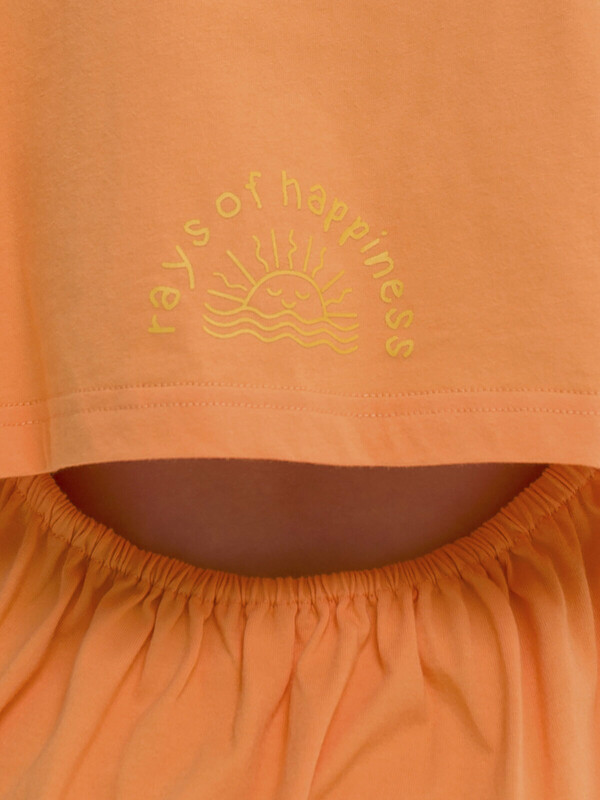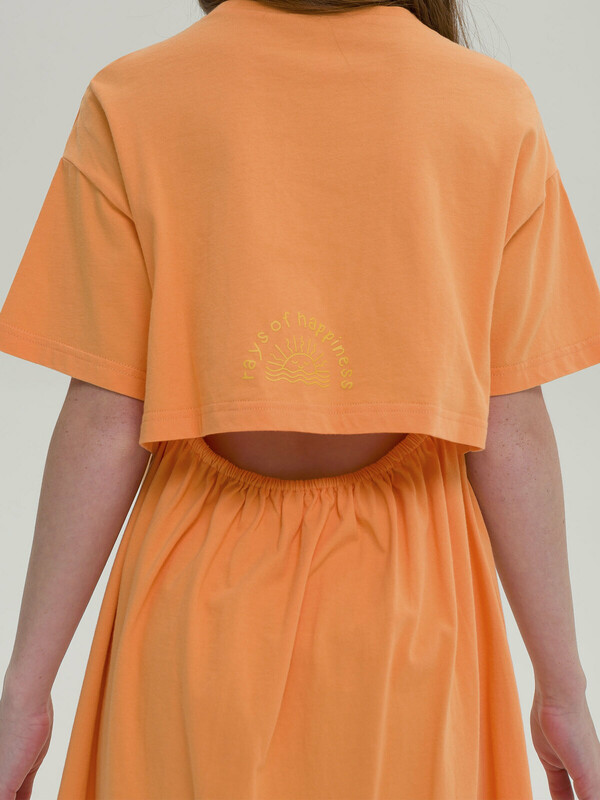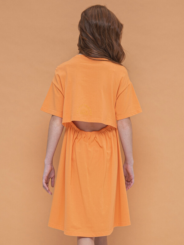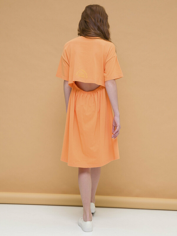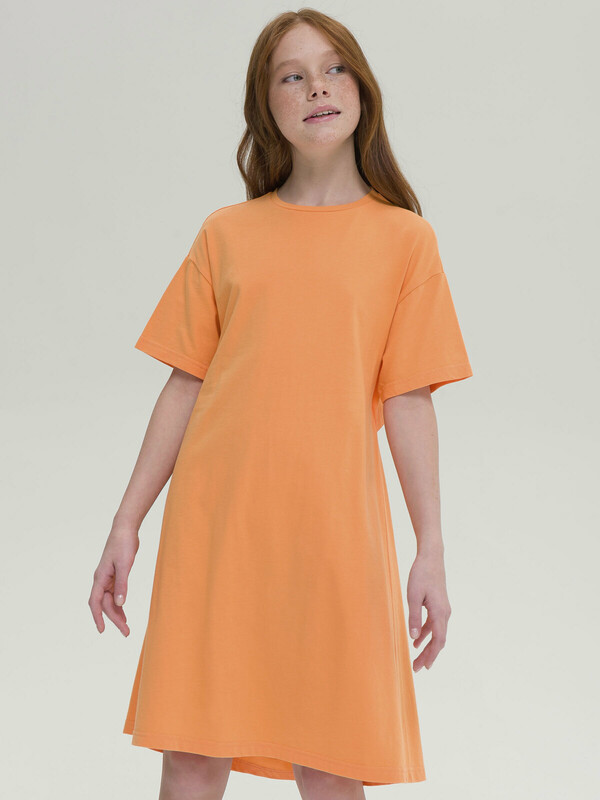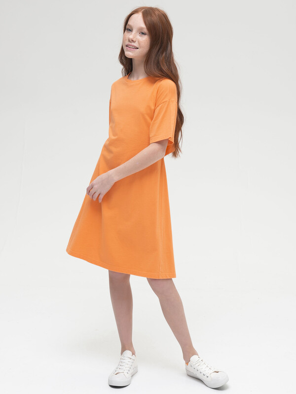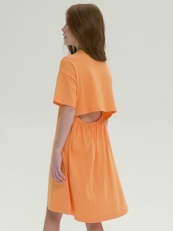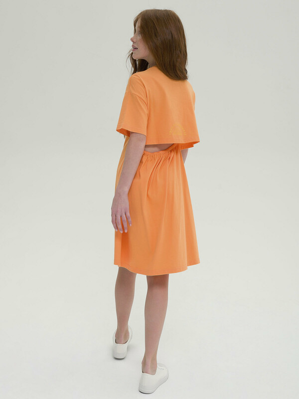 Платье для девочки. Красивое, лёгкое, летнее. 100% хлопок. Благодаря этому платье мягкое, комфортное и приятное на ощупь. Изделие длиной до колена, слегка расклешенное к низу со спущенным плечом. Оригинальности платью придают отлетная кокетка до линии талии по спинке и пояс, собранный на резинку, благодаря чему спинка обдуваемая, в самую жаркую погоду девочке будет комфортно. Изюминка модели - деликатный мягкий принт на кокетке сзади. Оно отлично сочетается с любой обувью, в том числе спортивной. Данная модель станет отличным выбором как платье в садик, для прогулки и для путешествий. Яркий цвет задаст настроение.
