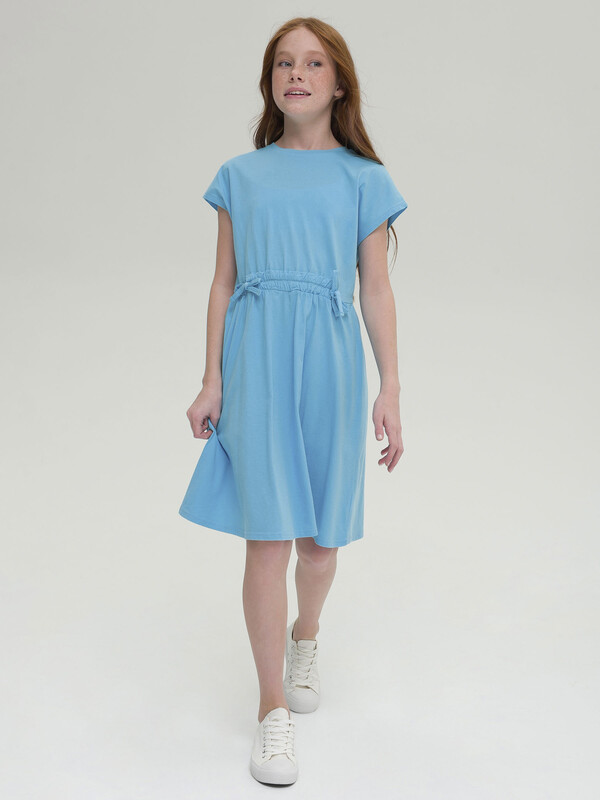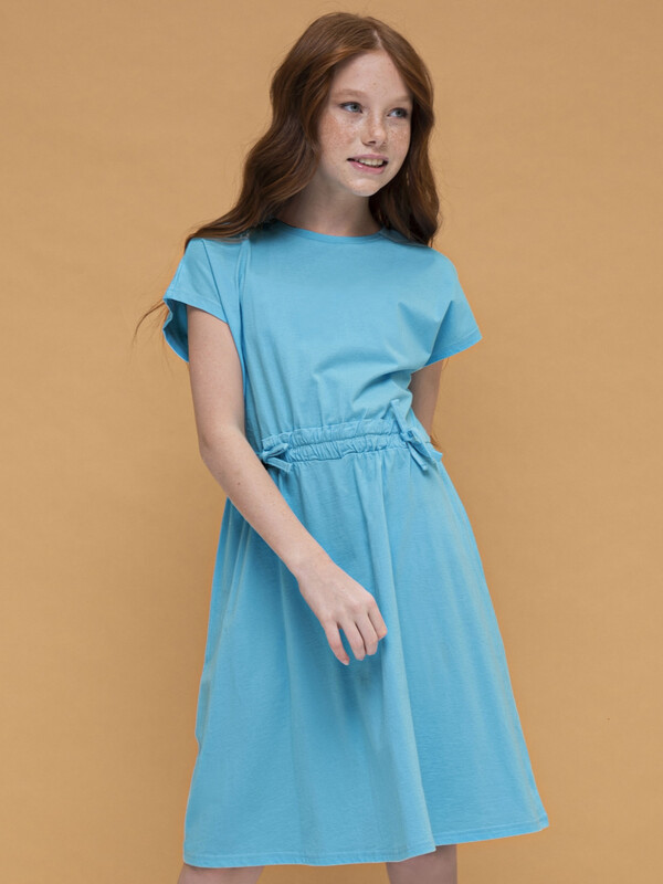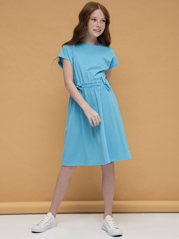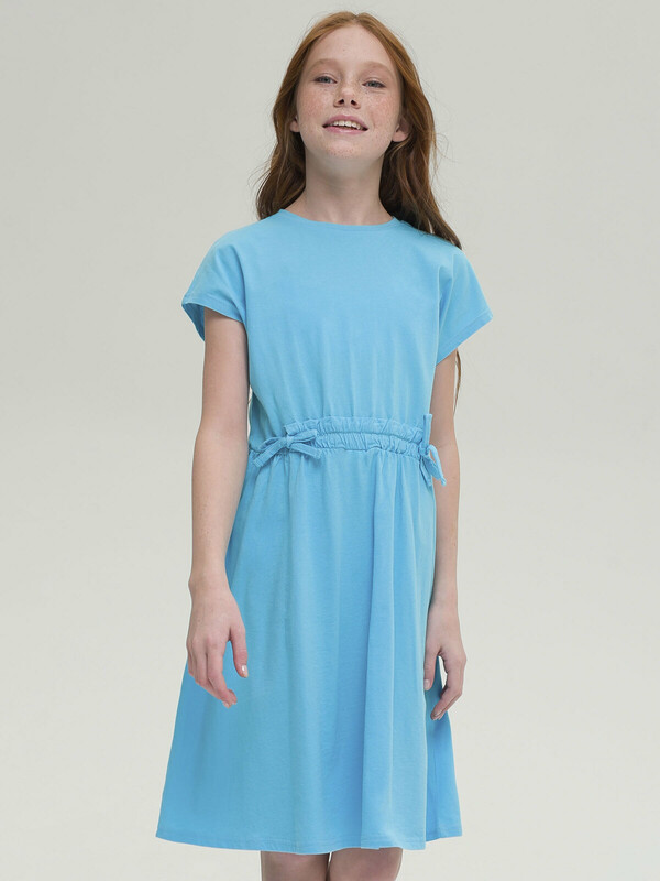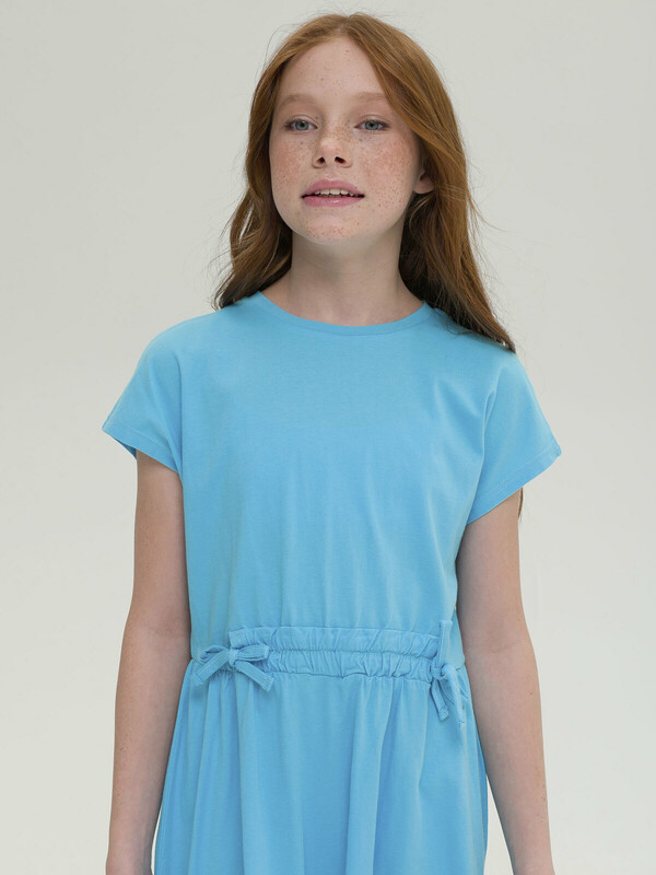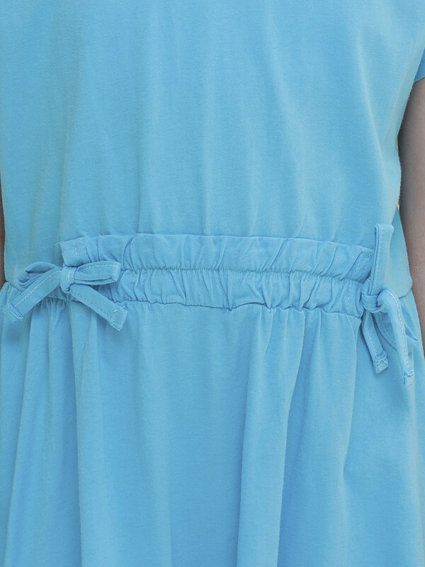 C виду простое, но такое стильное платье для девочки. Выполнено из 100% хлопка, материал не вызывает аллергии, а тело ребенка всегда дышит. Платье отрезное по талии с декоративной регулировкой объема шнурами из основной ткани и расклешённая юбка - платье отлично сидит на любой фигуре, не сковывает движение, девочке комфортно. Платье удобно в повседневной носке, как домашняя или пляжная одежда, так же подойдет для прогулки и детского сада.