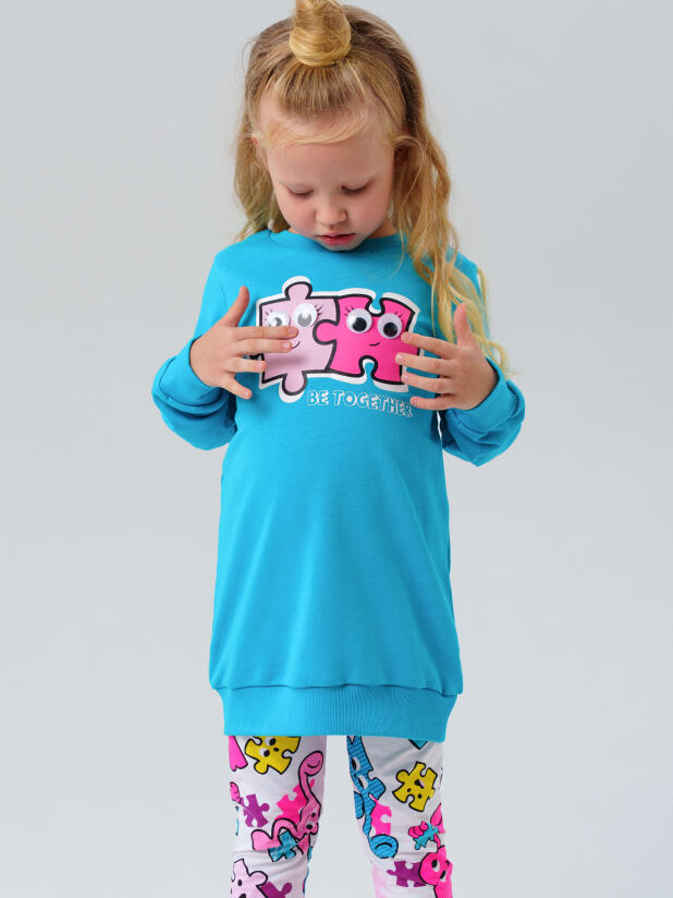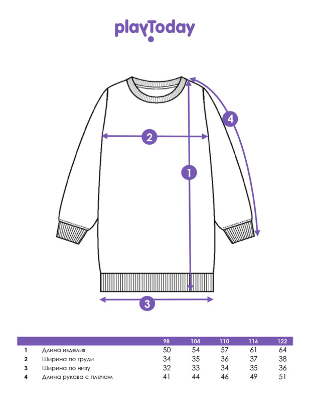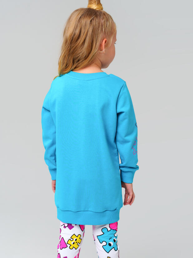 Платье-свитшот удобно носить в школу, сад, на прогулку или праздник. Сочетается с леггинсами, джинсами или колготками. В прохладное время можно дополнить жилетом или курткой от PlayToday.