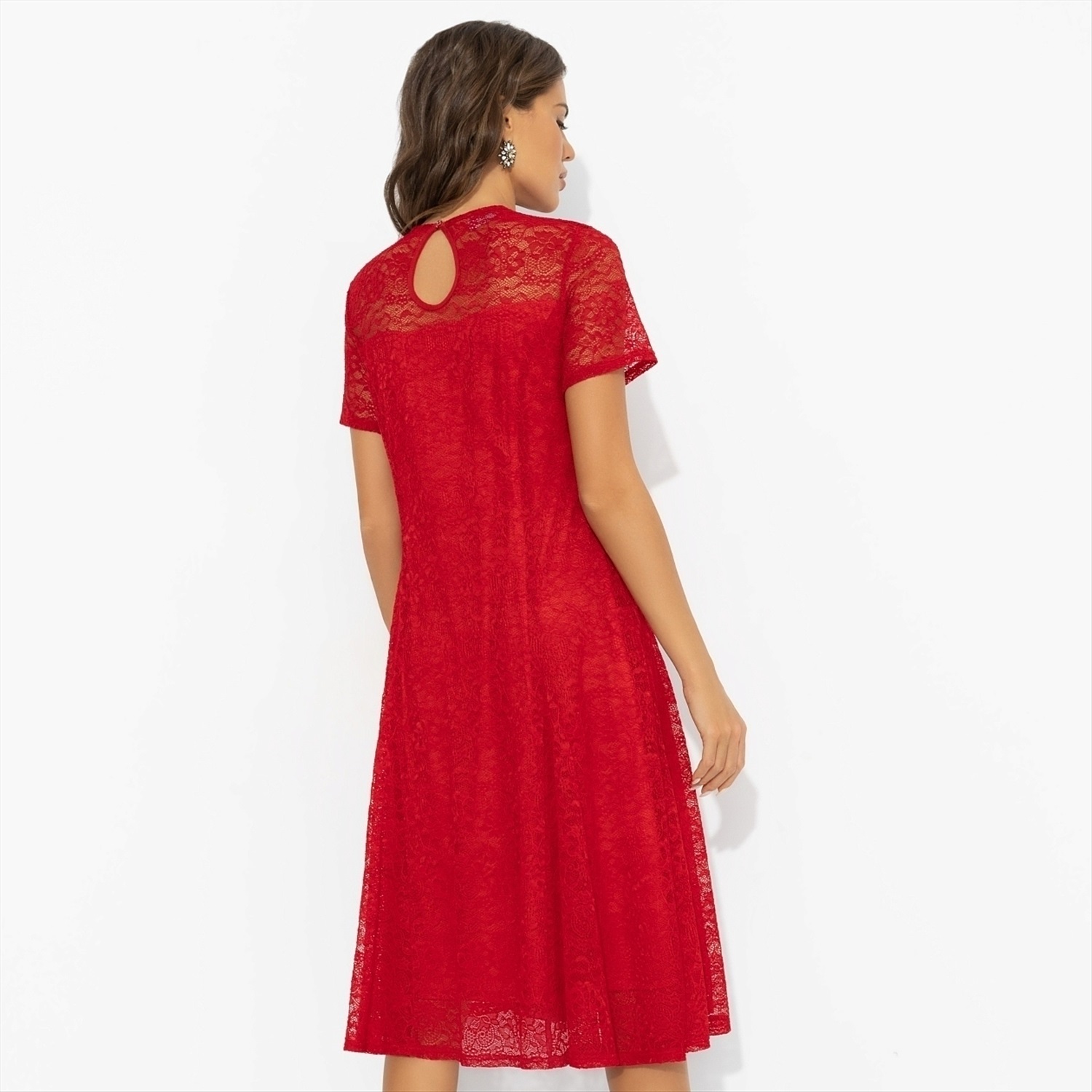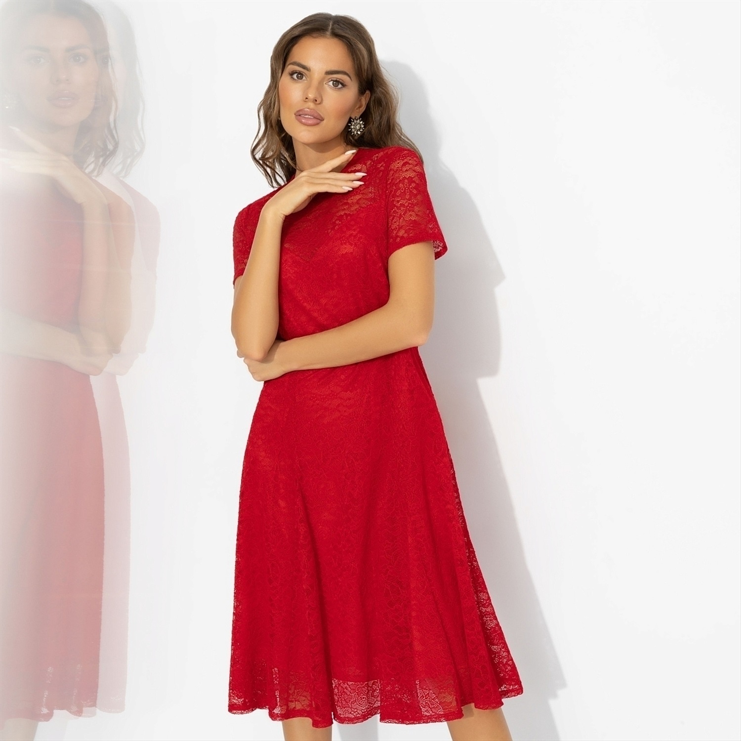 Романтика тоже может быть яркой. Алое кружевное платье отвечает за испанские страсти – вас поймут и без перевода. Один взгляд, и вы уже в круговороте ритмичного танго. Платье миди из стрейч-кружева с подкладкой из мягкого трикотажа подчёркивает фигуру, оставаясь максимально комфортным. Лёгкий клёш и полупрозрачный верх создают эффект вихря эмоций. Выбирай это платье для свиданий, торжеств и моментов, когда хочется добавить огня в собственную историю. Подойдет на любой тип фигуры.