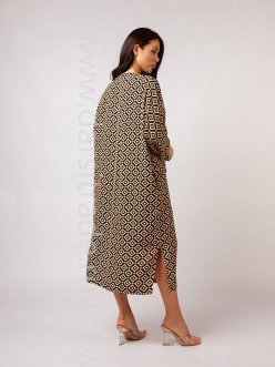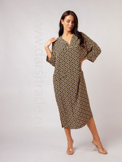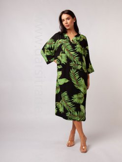 Комфортное и стильно платье свободного кроя, спущенная плечевая линия, V-образный вырез, планка под грудью. Вшивные карманы. Разрезы по бокам.