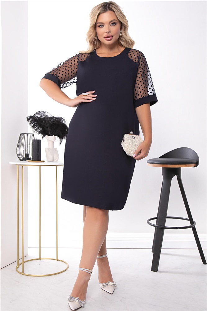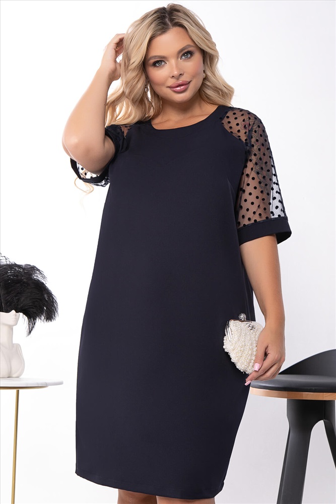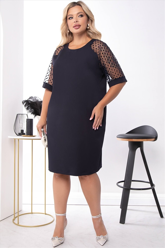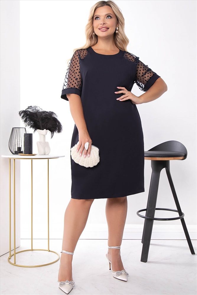 Шикарное платье свободного силуэта с эффектными рукавами. Это платье выглядит сдержано и роскошно одновременно благодаря рукавам из сетки. Такое платье подходит как для работы, так и для торжественного мероприятия. Рукав укороченный.