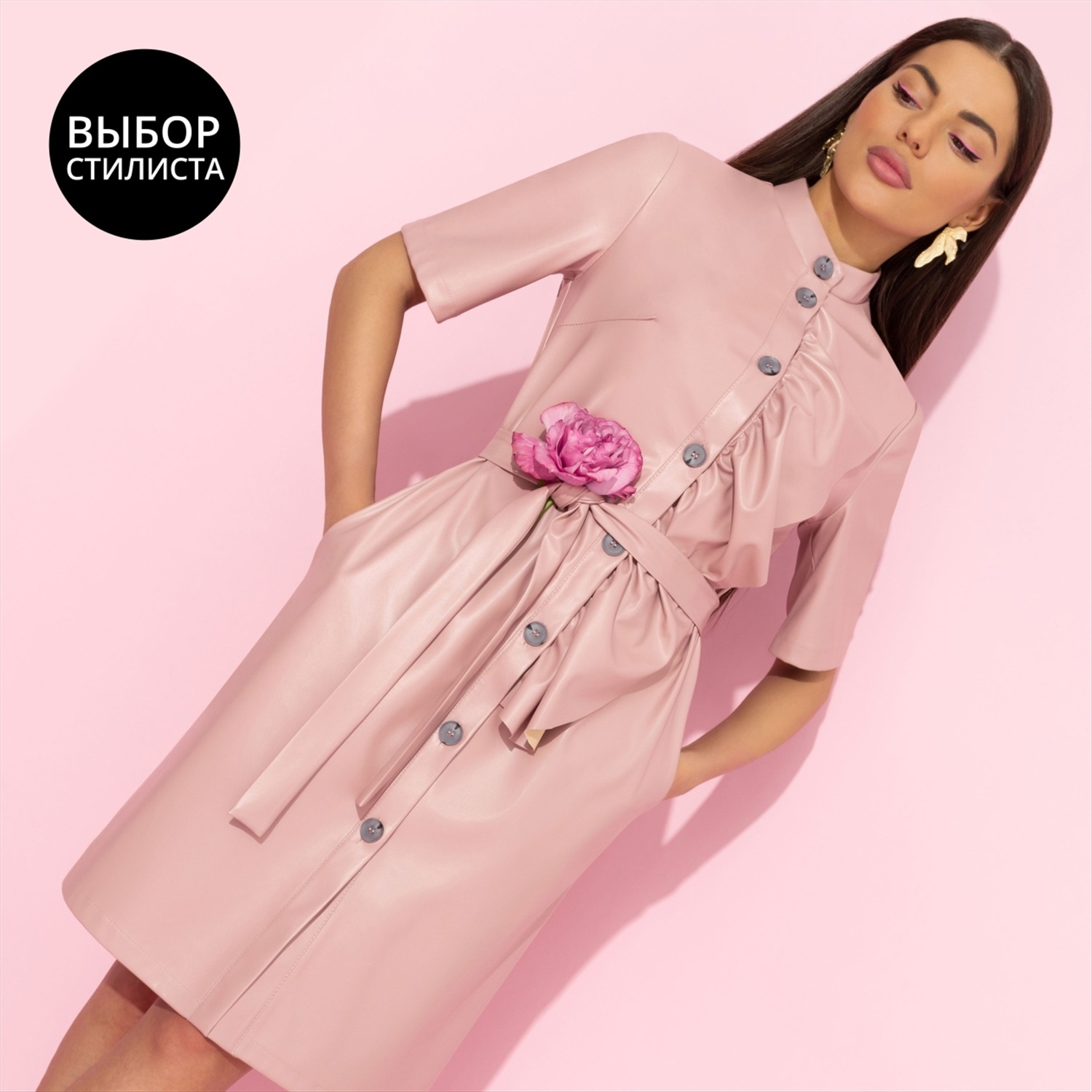 ТН ВЭД: 6204430000; Состав: Экокожа (55% п/у волокно, 45% полиэстер); Плотность ткани: Средняя; Тип ткани: Текстиль; Вид застежки: Пуговица/-ы; Карманы: В боковом шве; Основной цвет ткани: Розовый; Отрезная талия: Нет; Подклад: Нет; Резинка по талии: Нет; Рисунок/раппорт: Нет, все изделия идентичны; Сезон: Демисезон; Силуэт: Прямой; Стиль: Классический