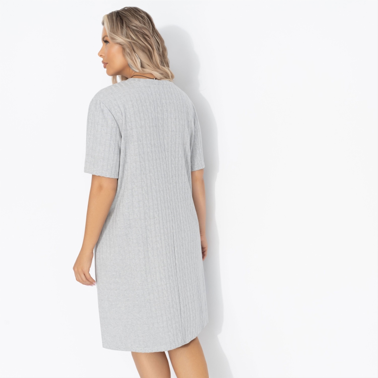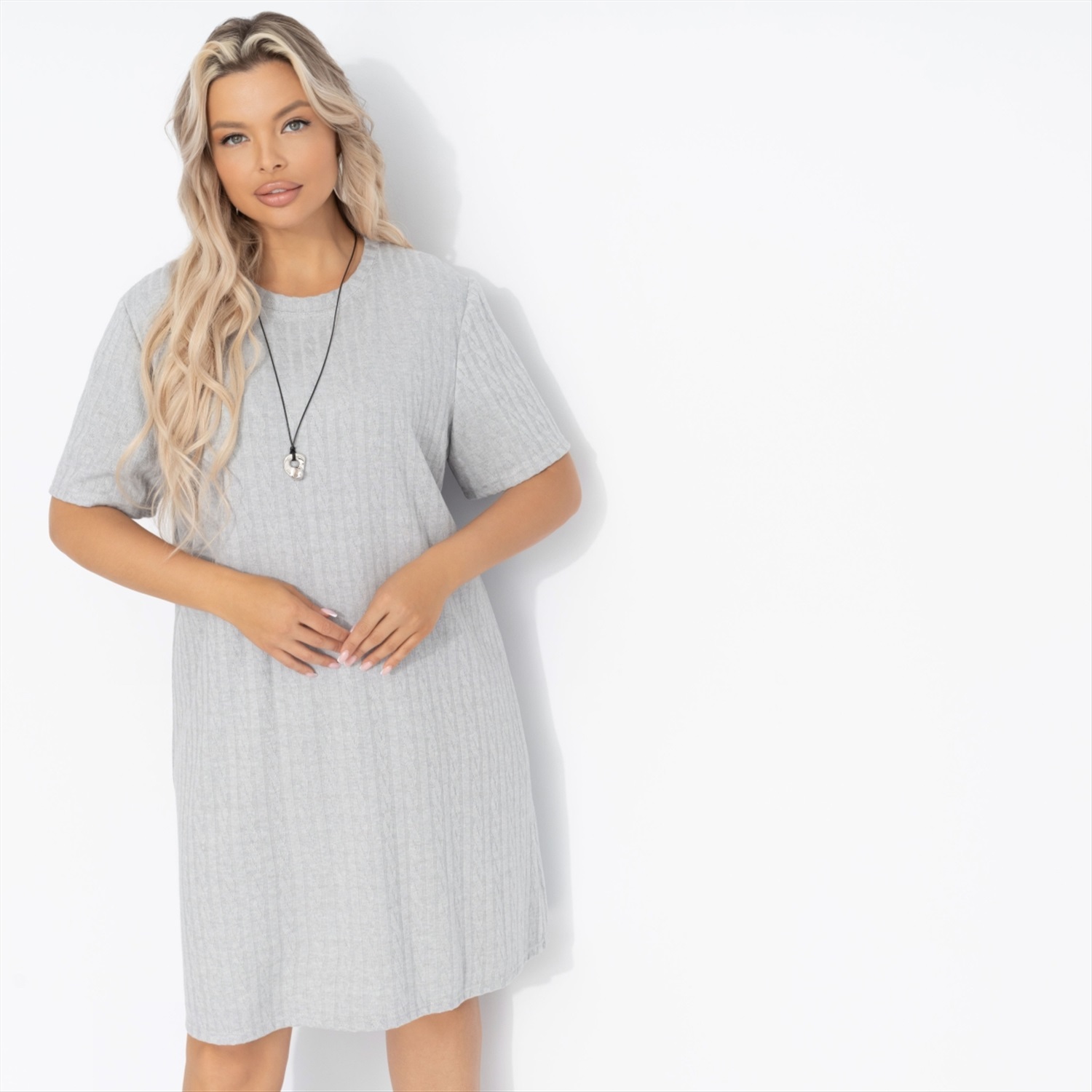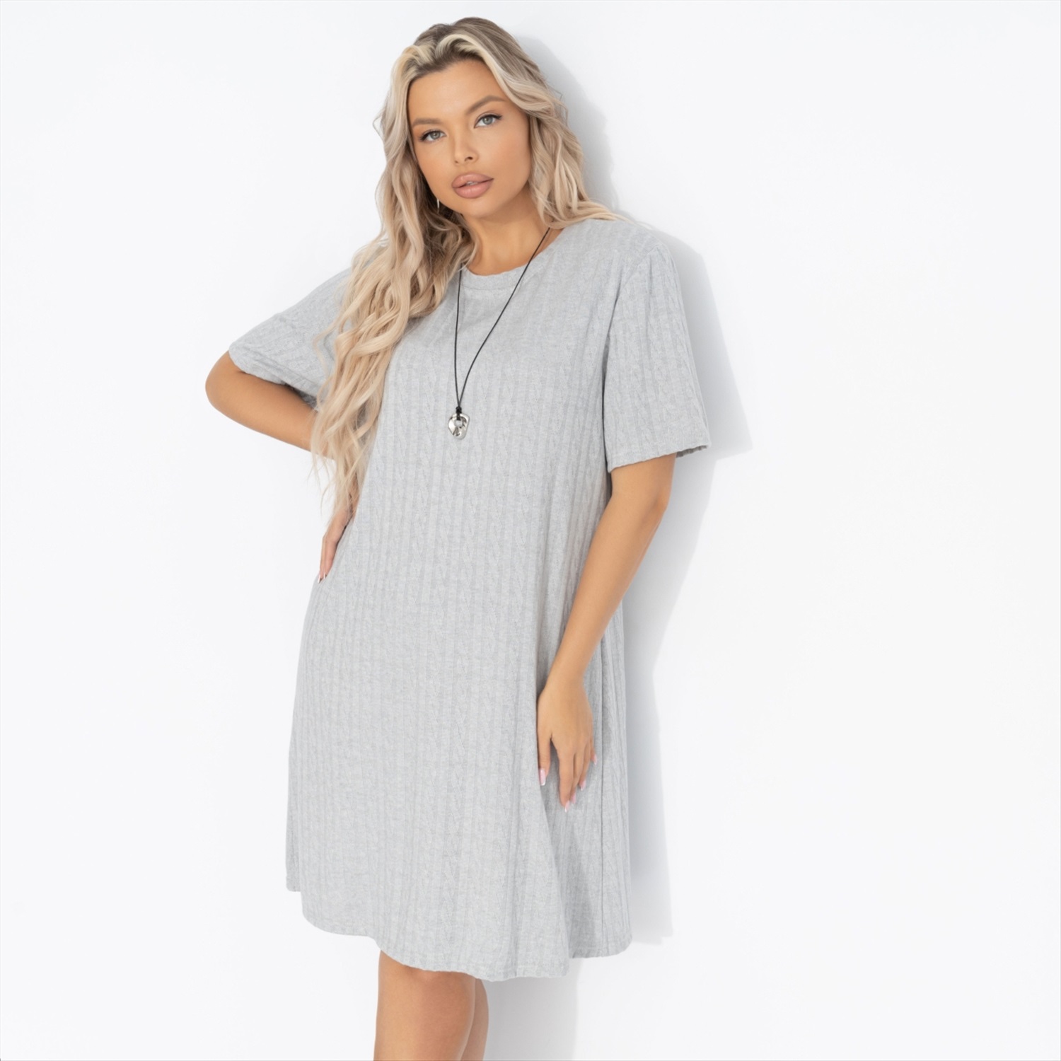 ТН ВЭД: 6104430000; Состав: Вязаное полотно (75% нейлон, 22% хлопок, 3% спандекс); Плотность ткани: Средняя; Тип ткани: Трикотаж; Вид застежки: Нет; Карманы: Нет; Основной цвет ткани: Серый; Отрезная талия: Нет; Подклад: Нет; Резинка по талии: Нет; Рисунок/раппорт: Каждое изделие уникально из-за расположения рисунка на ткани; Сезон: Круглогодичный; Силуэт: Свободный; Стиль: Повседневный
