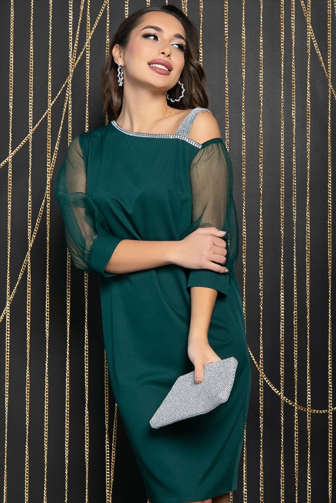 Роскошное вечернее платье станет вашим идеальным нарядом, чтобы почувствовать себя настоящей королевой на любом торжественном мероприятии. Его уникальный дизайн покорит вас с первого взгляда. Открытое плечо придает платью нежность и женственность, а объёмные рукава-фонарики из органзы добавляют ему изысканности и элегантности. Этот стиль и дизайн не оставят равнодушными окружающих и позволят вам быть в центре внимания в любой ситуации. Горловина платья, украшенная стразами, добавляет еще больше шарма и блеска вашему образу. Этот наряд станет вашим незаменимым спутником, который сделает вас звездой любого вечера.