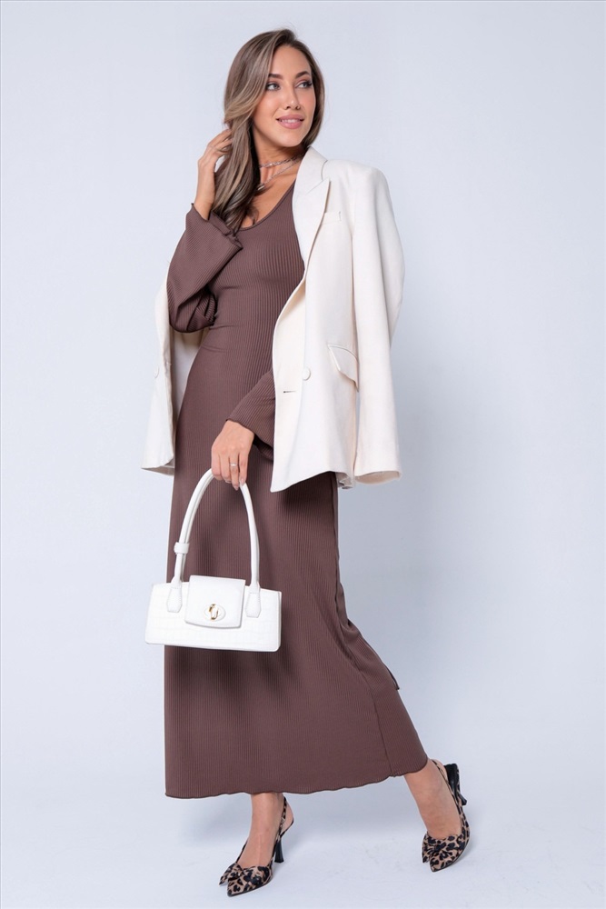 Состав: вискоза 60%; эластан 10%; полиэстер 30% Модель: Платье лапша 160-1 Тип товара: платье Материал: вискоза | вискоза Бренд: Шерри Длина: длинный Карман: без карманов Отделка: с волнистым краем | со шнурком Рисунок: однотонные Рукав: длинный рукав Сезонность: лето | осень | весна | зима Силуэт: приталенный Стиль: повседневный Воротник: без воротника Застежка: без застежки Женское трикотажное длинное в пол платье лапша от бренда Сhezzy это роскошная универсальная модель для стильного и трендового образа. Платье в пол идеально подходит как для повседневного использования в демисезонное время, так и для вечерних мероприятий летом или поход в ресторан на свидание зимним вечером. Особенности платья: - Стильный приталенный крой подчеркивает фигуру, а утягивающие завязки придают стройный женственный силуэт, сочетая в себе нежность и элегантность. - Качественный трикотажный материал, который обеспечивает мягкость и приятное ощущение на коже. - Однотонное исполнение, что делает его универсальным и подходящим для разных стилей и случаев. - В основе платья - 60% вискоза, 10% эластана и 30% полиэстера. Приятное к телу теплое, позволяет коже дышать, долго сохраняет первоначальный вид и стиль. - Длинные расклешенные широкие рукава добавляют изысканности обтягивающему платью в рубчик и гармонично завершают композицию. Возможность комбинировать с любой обувью, будь то летние ботинки, зимние туфли или кеды, дает шанс создавать луки для любого сезона. Этот фасон исключительно универсален: он подойдет для офиса, прогулок или праздничных торжественных событий таких как, день рождения, вечеринка, фотосессия, корпоратив, на новогоднее мероприятие или просто выход в клуб. Это шикарное коктейльное серое платье можно носить каждый день или сохранить для особых случаев его привлекательность от этого не изменится. Таблица размеров и веса