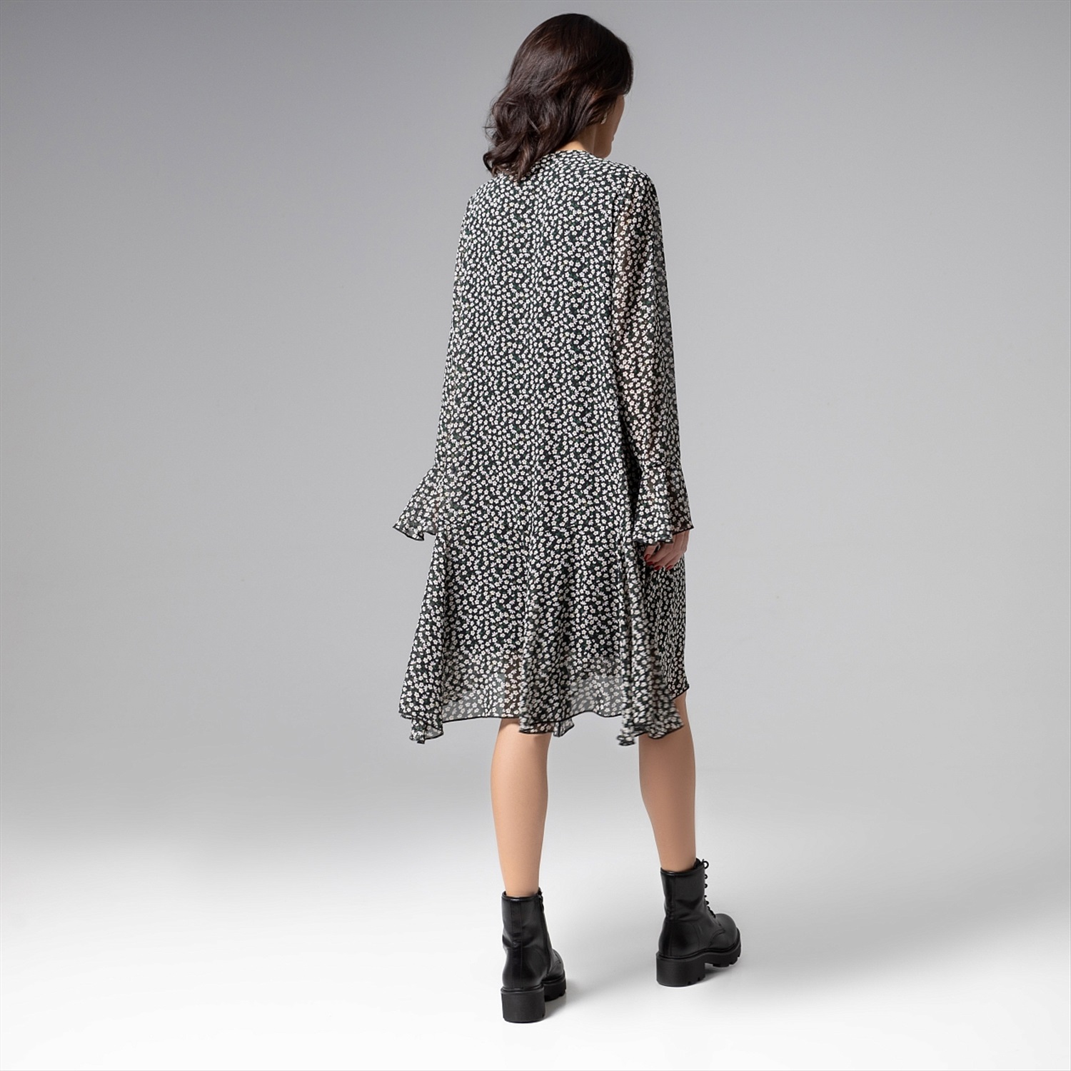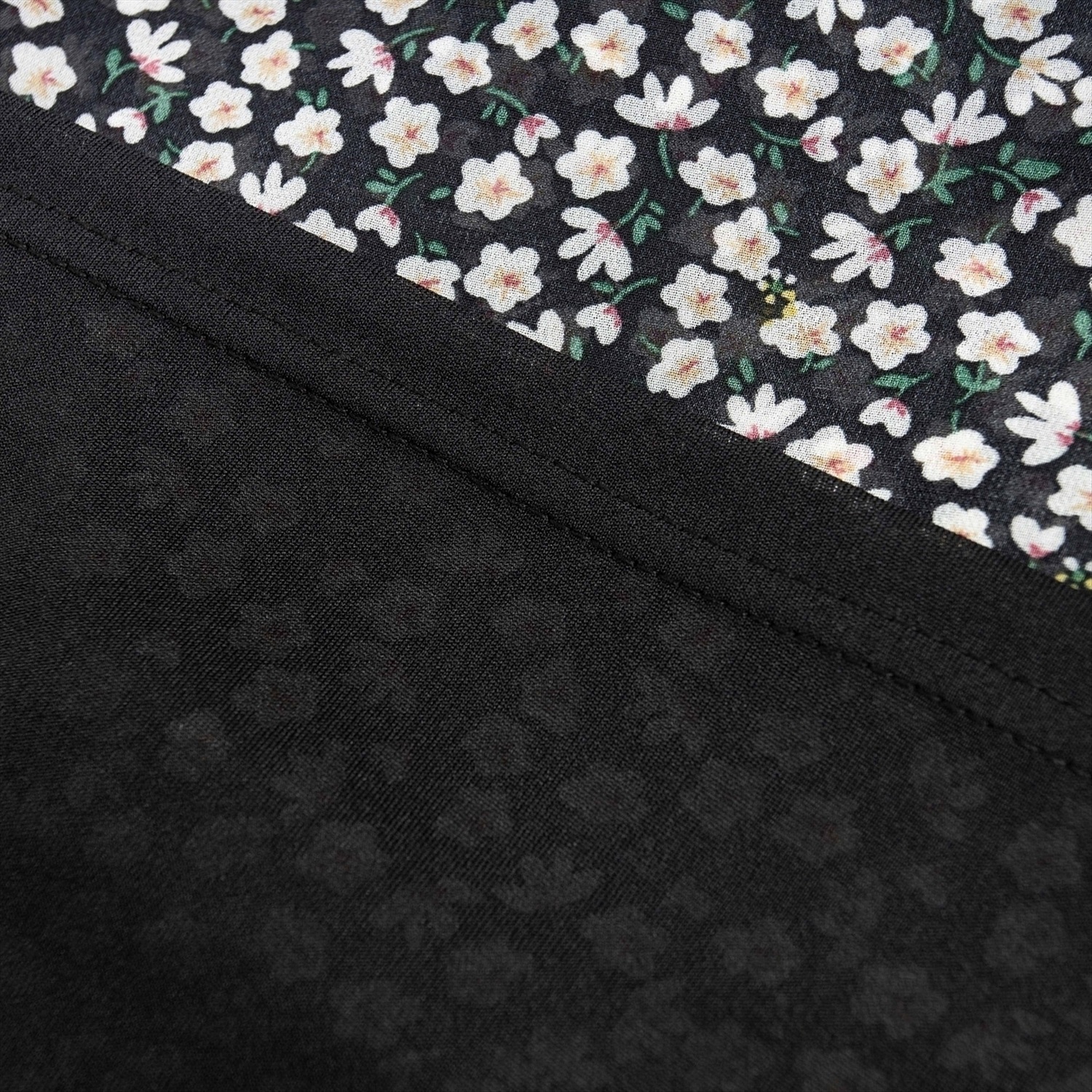 ТН ВЭД: 6204430000; Состав: «Шифон», «трикотажный подклад» (98% п/э, 2% спандекс); Плотность ткани: Тонкая; Тип ткани: Текстиль; Вид застежки: Нет; Дополнительный цвет ткани: Разноцветный; Карманы: Нет; Основной цвет ткани: Черный; Отрезная талия: Нет; Подклад: Есть; Резинка по талии: Нет; Рисунок/раппорт: Нет, все изделия идентичны; Сезон: Круглогодичный; Силуэт: Свободный; Стиль: Нарядный