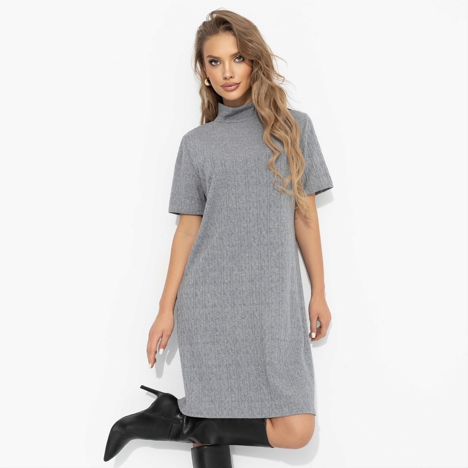 ТН ВЭД: 6104430000; Состав: Вязаное полотно (75% нейлон, 22% хлопок, 3% спандекс); Плотность ткани: Средняя; Тип ткани: Трикотаж; Вид застежки: Нет; Карманы: Нет; Основной цвет ткани: Серый; Отрезная талия: Нет; Подклад: Нет; Резинка по талии: Нет; Рисунок/раппорт: Нет, все изделия идентичны; Сезон: Круглогодичный; Силуэт: Свободный; Стиль: Повседневный