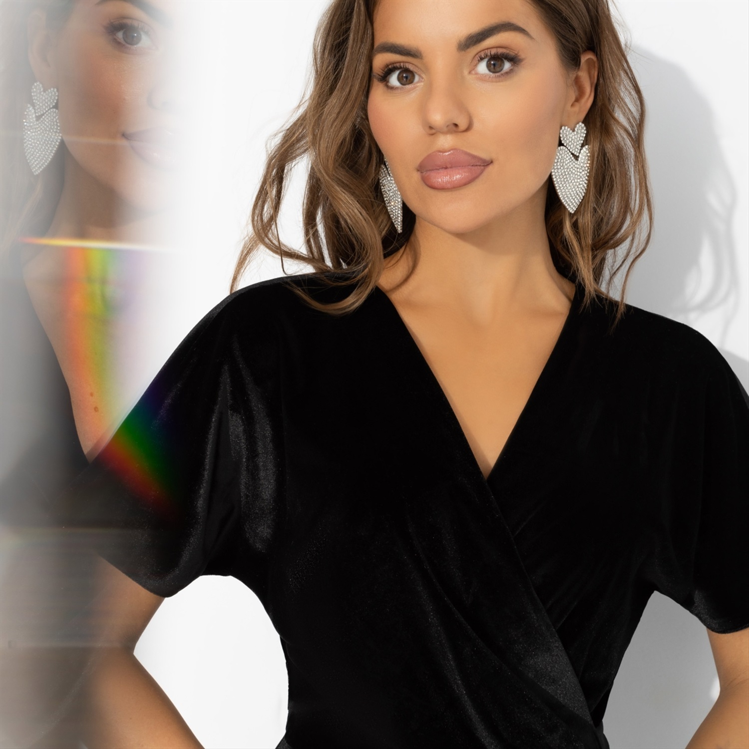 Back to black… Сегодня ты ‒ королева драмы. Эффектное черное платье ‒ как зявление. Я перевернула эту страницу, дальше двигаюсь в своем ритме. На фоне звучит пластинка Эми Уайнхаус, а ты больше не страдаешь по тому самому. Пришла его очередь. Роскошный бархат мягко облегает и струится при движении. Высокий разрез ‒ чтобы было удобно танцевать. Идеально для новогодней вечеринки.
