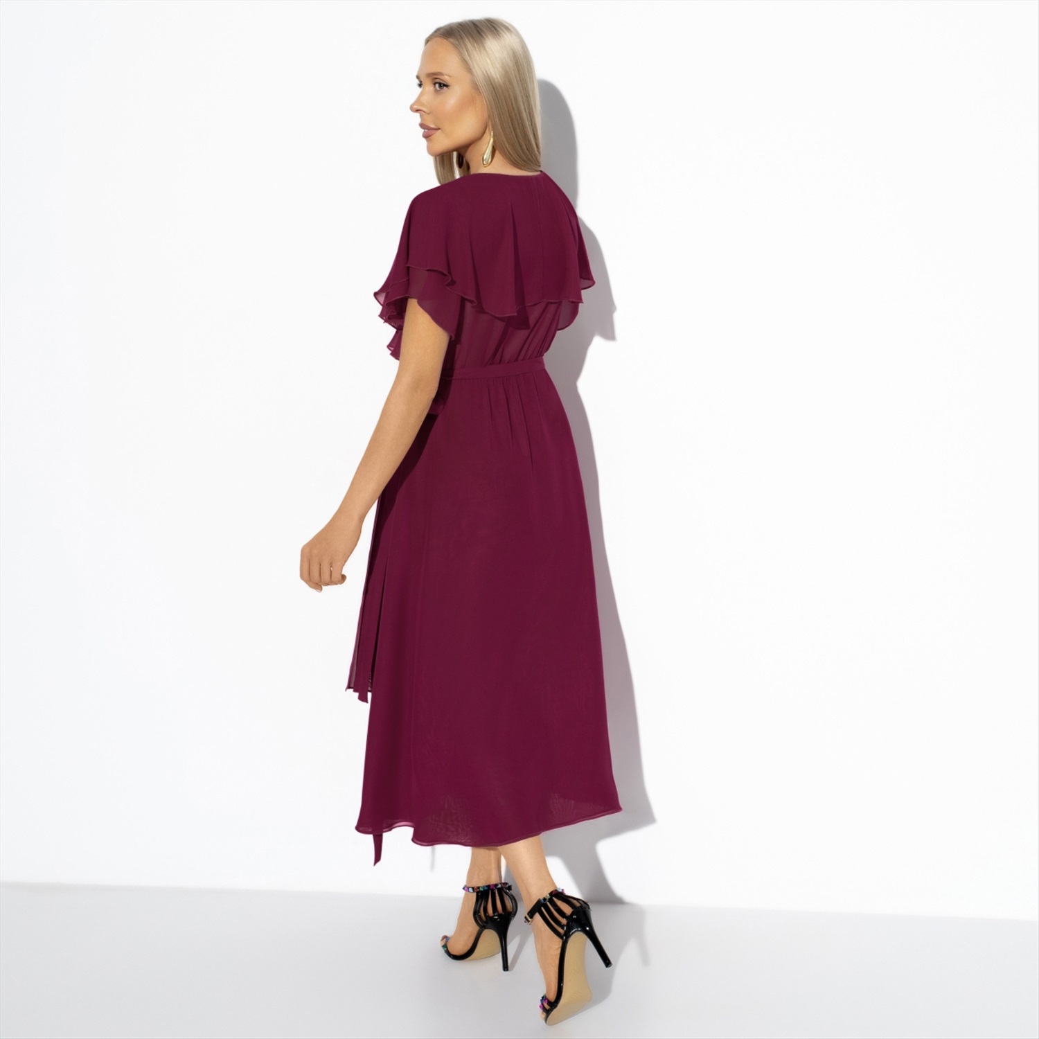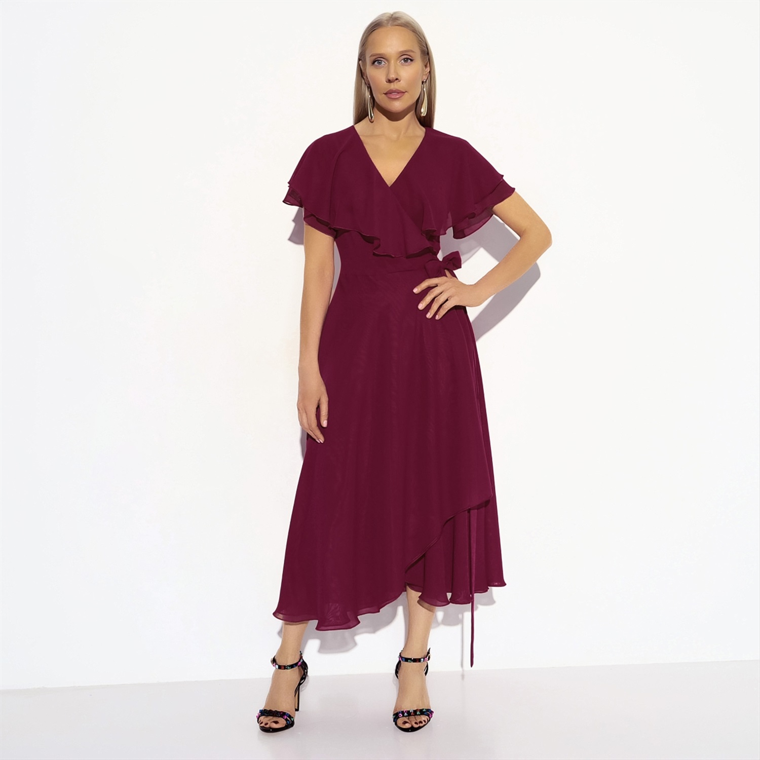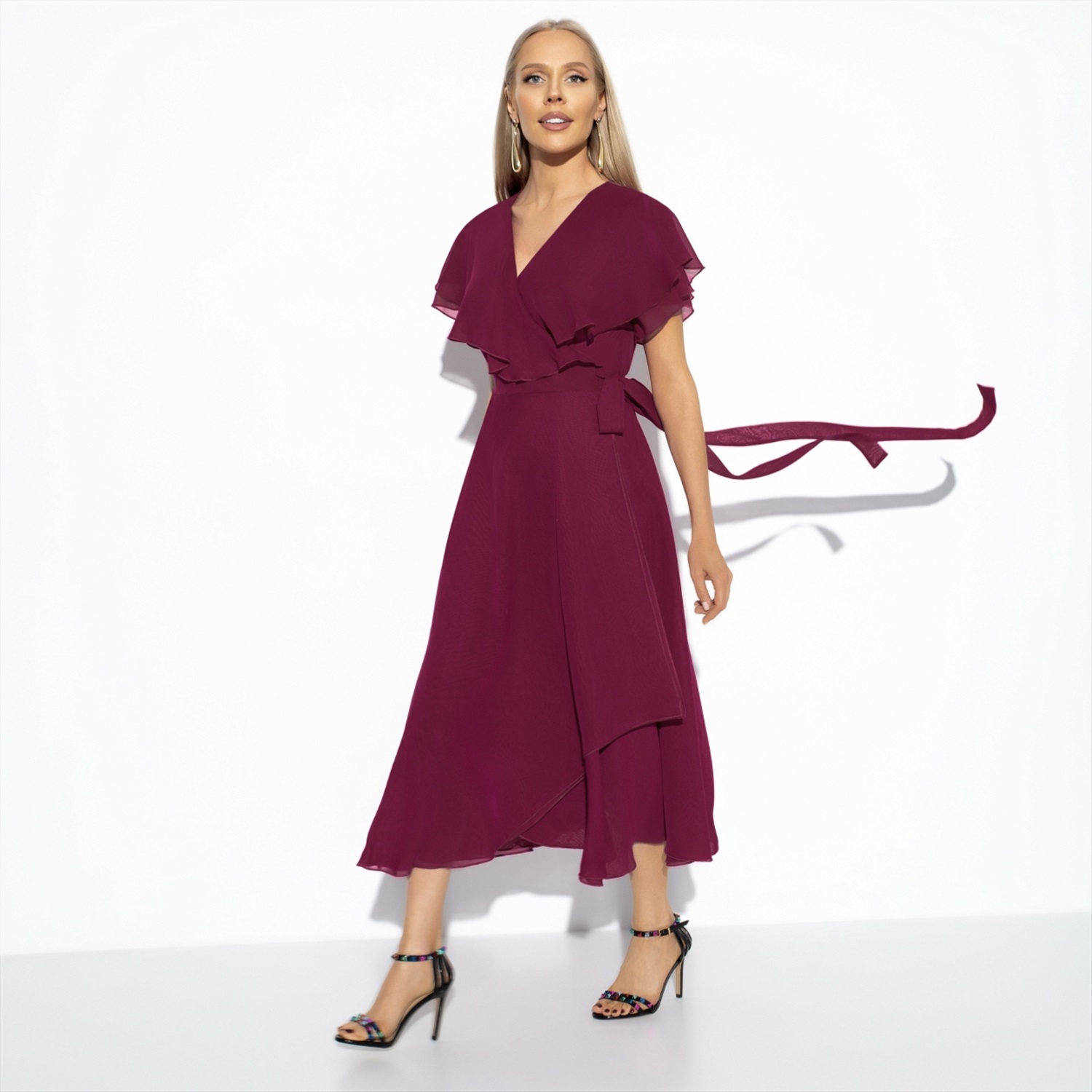Высокий пульс, легкое головокружение и периодическое заикание было диагностировано у него после свидания с вами. Виной всему платье в насыщенном винном цвете. Но он позвал вас на второе. Платье приталенное на запах. Подойдет на любой тип фигуры.