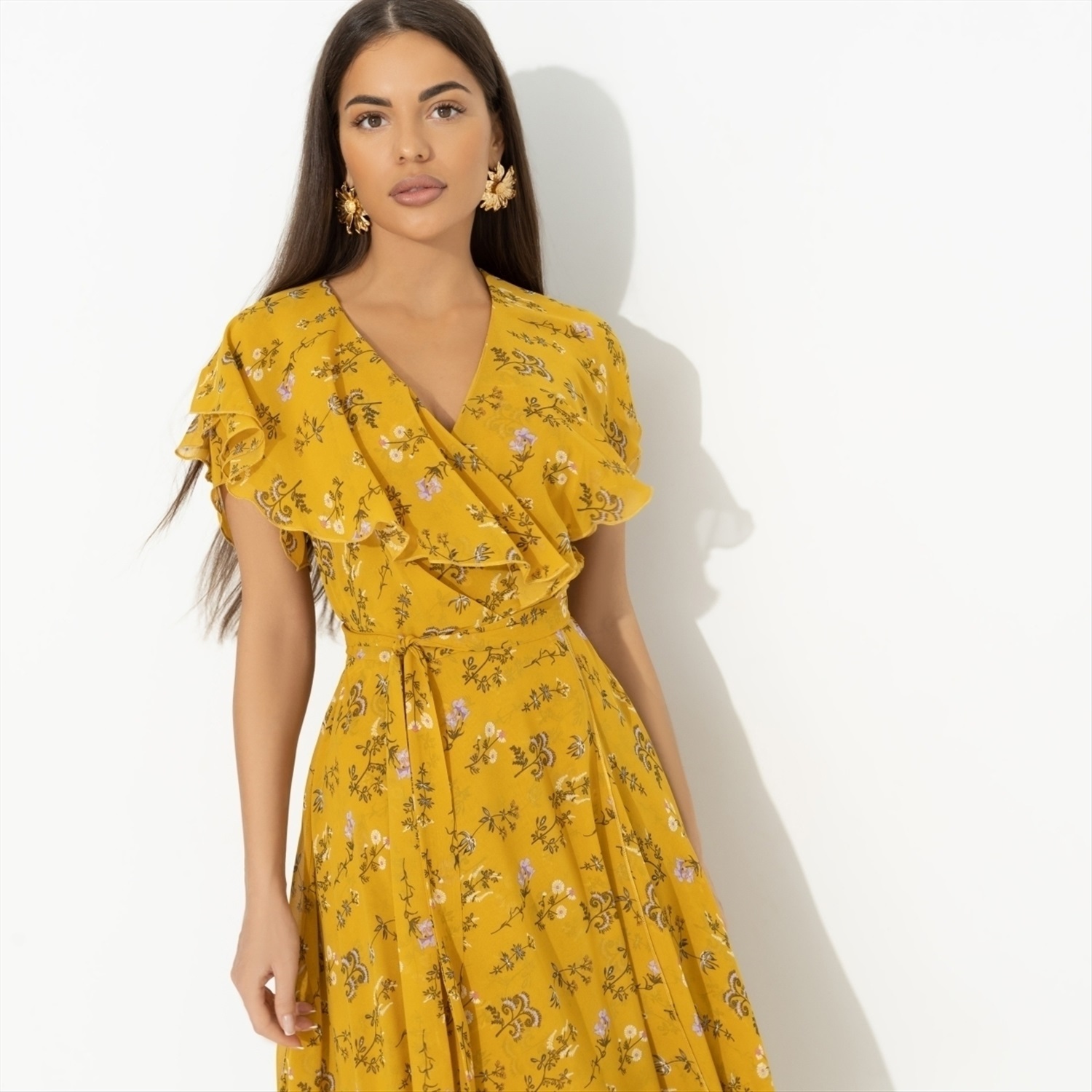 Он знал, что от тебя мало толку на кухне, зато в ресторане ты раскрываешься по максимуму. Звонко смеешься, заряжаешь его женской энергией, вызываешь в нем прилив жизненной силы. В платье CHARUTTI эффект усиливается вдвое. Платье приталенное в длине миди. Глубокий разрез за счет запаха. Есть тонкий пояс на линии талии. Два слоя юбки. Рюши в зоне декольте и по спинке изделия.