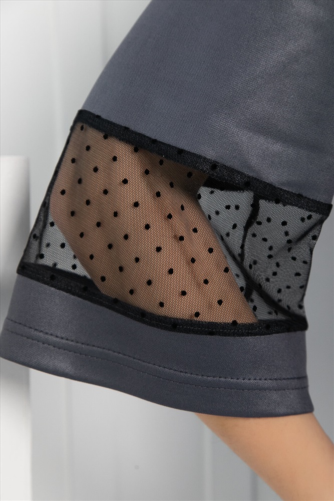 Приталенное платье классической длины ниже колена с разрезами по бокам – идеальный выбор для тех, кто ценит комфорт и строгость. Благодаря удобной посадке вы сможете наслаждаться этим платьем каждый день. На линии груди и на рукаве есть сетка, что добавляет образу женственности и элегантности. В комплект входит пояс на пряжке со стразами, который делает образ завершённым. Рукав средней длины, расширенный к низу.