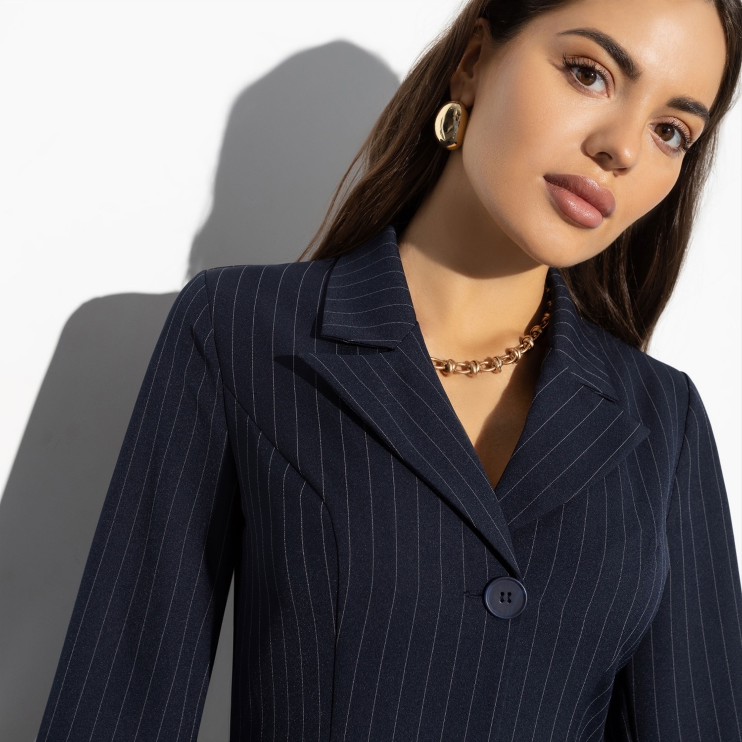 Тонка полоска – тренд, пришедший из делового дресс-кода. Но это не про офисный стиль, а про высокий статус. Нельзя сомневаться в уверенности женщины в платье-жакете в тонкую полоску.