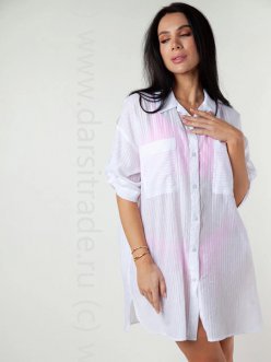 Материал: 100% хлопок Туника рубашечного типа выполнена из тонкого хлопка (марлевки) с текутрированной полоской.Боковые разрезы до уровня бедер. У туники застежка на пуговицах на всю длину изделия, для удобства есть внутренние карманы. Воротник отложной. Два нагрудных кармана.Руков 3/4 с возможностью подворота с креплением на пуговку. В тунике бежевого цвета пуговицы выполнены из натурального перламутра. Комментарии к товару
