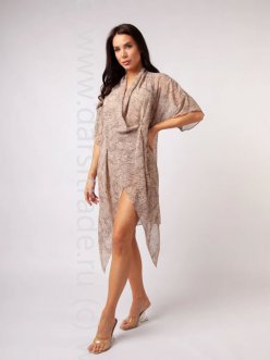 Материал: 100% полиэстер (Креп-шифон) Туника свободного кроя на запах, в области плечевого шва - мягкие складки, позволяющие драпировать область декольте, струящийся спущенный рукав. Оригинальный крой низа туники.Туника выполнена из креп-шифона. За счет зернистости ткани, не смотря на то,что это полиэстер - ткань мягкая , дышащая,не электризуется, прекрасно держит форму и быстро сохнет. Комментарии к товару