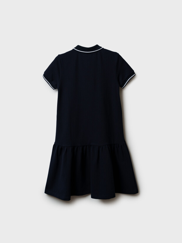 Классическое темно-синее школьное трикотажное платье поло для девочки подростка от PlayToday — стильная альтернатива стандартной школьной форме. Удобное, элегантное и дышащее платье идеально подойдёт для повседневных занятий, 1 сентября, школьных мероприятий и особых случаев.