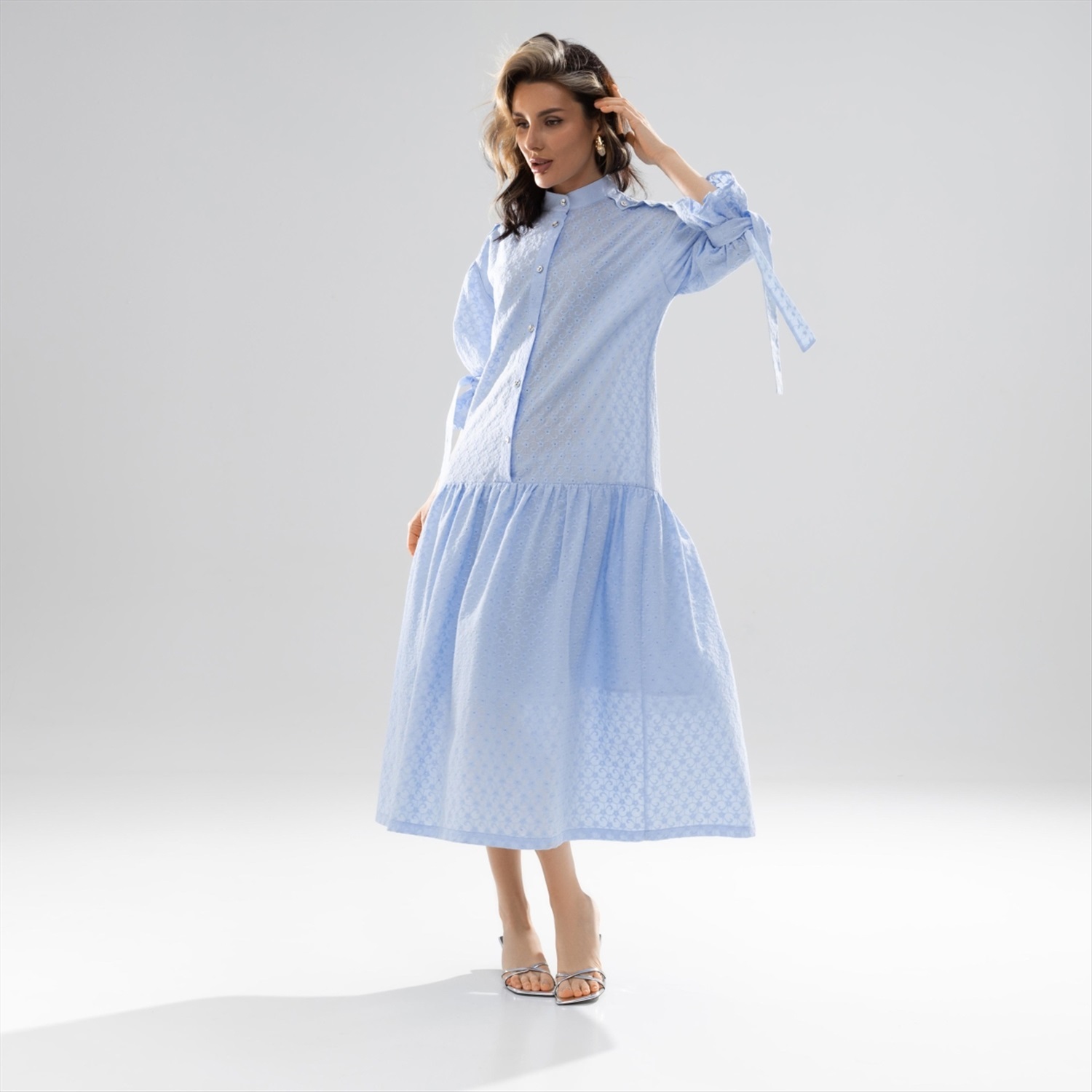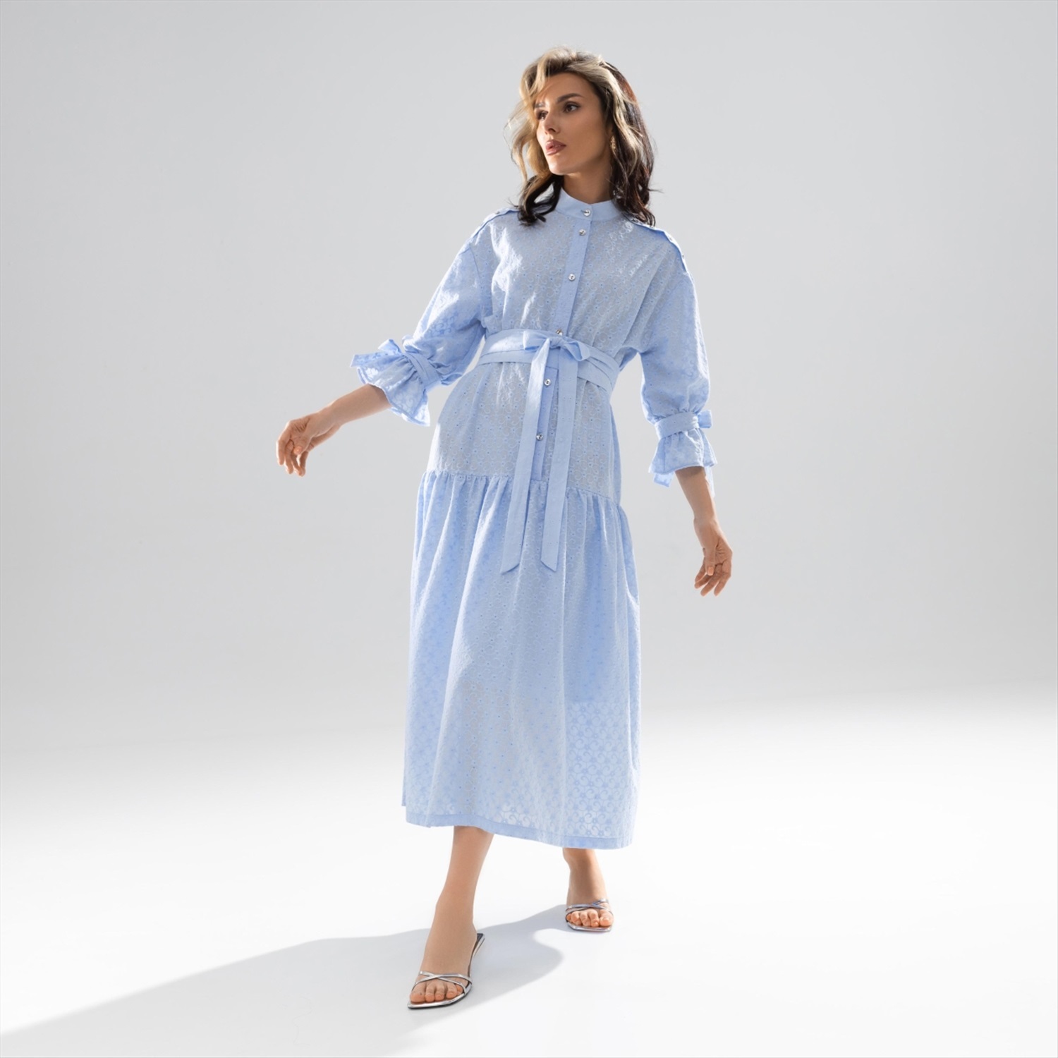 Платье из шитья высокого качества в нежном голубом оттенке представит вас, как девушку, познавшую смыл жизни. Платье CHARUTTI – воплощение женственности и утонченности в наивысшем проявлении.