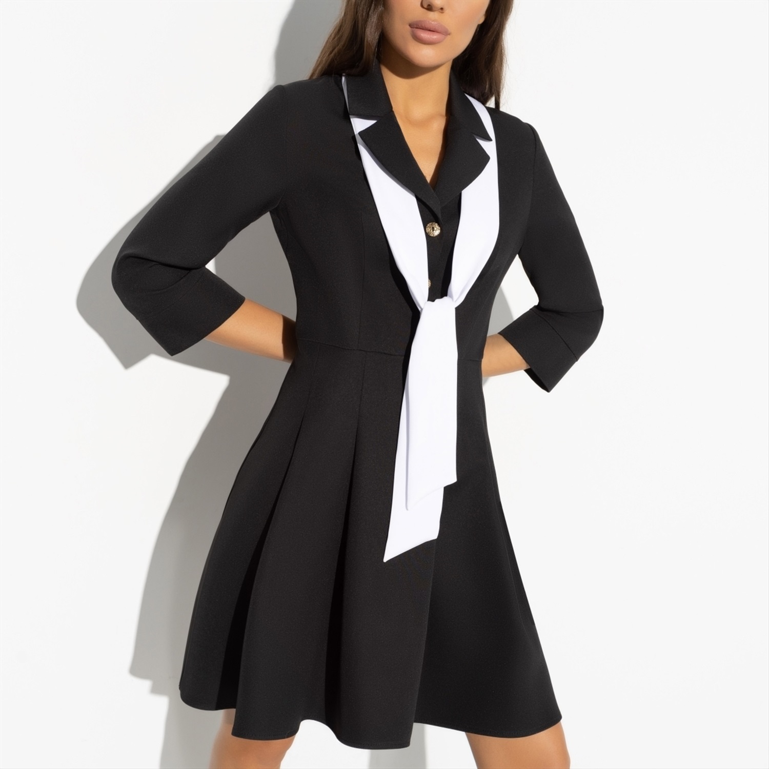 ТН ВЭД: 6204499000; Состав: «Барби» (60% п/э, 37% вискоза, 3% спандекс); Плотность ткани: Средняя; Тип ткани: Текстиль; Вид застежки: Пуговица/-ы; Дополнительный цвет ткани: Белый; Карманы: Нет; Основной цвет ткани: Черный; Отрезная талия: Есть; Подклад: Нет; Резинка по талии: Нет; Рисунок/раппорт: Нет, все изделия идентичны; Сезон: Круглогодичный Твоим основным критерием поиска работы было гибкое начало дня. Никогда не знаешь, сколько времени утром уйдет на создание образа. Начальство должно относиться с пониманием. Платье длины выше колена. Приталенный силуэт. Расклешенная юбка. Тонкий шарф белого цвета в комплекте. Платье приталенного силуэта «Нарушая правила (с шарфиком)» – это не просто элемент гардероба, а настоящая находка для всех, кто ценит стиль и элегантность. Изготовленное из благородной ткани «барби», это платье объединяет в себе достоинства высокой моды и комфорта. Прямо с порога ваш внешний вид будет говорить сам за себя – уникальное сочетание приталенного силуэта и расклешенной юбки создает идеальную гармонию для любой фигуры. А нежный белый шарф в комплекте добавит нотку загадочности и утонченности в ваш образ. Покупая это платье оптом, вы обеспечиваете себе постоянное присутствие новаторского стиля для вас и ваших клиентов. Что может быть лучше, чем иметь в гардеробе несколько платьев, которые идеально подходят для любого случая? Приобретая платье «Нарушая правила» оптом, вы открываете перед собой безграничные возможности для создания индивидуального стиля. Независимо от времени суток и намеченного мероприятия, выше колена длина и приталенный силуэт позволят вам выглядеть элегантно и уверенно. Гибкое начало дня теперь не проблема – ваше платье уже ухаживает за вашим стилем и комфортом. Это оптимальный выбор для начинающих и опытных предпринимателей в сфере моды, желающих предоставлять своим клиентам лучший ассортимент. Время – самый важный ресурс. Экономьте его с платьем «Нарушая правила (с шарфиком)» оптом. Качественная ткань «барби» говорит о долговечности и легкости в уходе, а это значит, что каждое платье будет служить долго, сохраняя свою первоначальную свежесть и яркость. Комплексное и продуманное решение для вашего гардероба – от утренних встреч до вечерних прогулок. Этот шикарный наряд будет всегда в тренде, а его универсальность убедит вас в том, что делать выбор легче, чем вы думали. Оптовая покупка этого платья означает не только стиль, но и инвестицию в будущее вашего бизнеса.