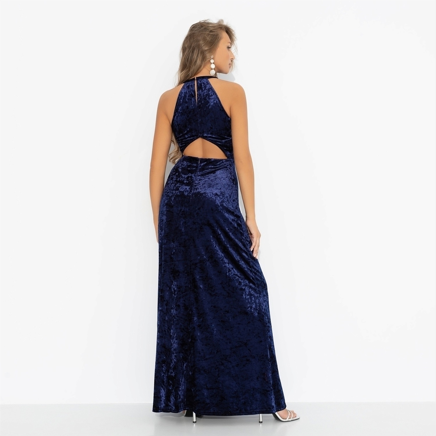 Для настоящей королевы новогодней ночи! Глубокий сапфир, благородный бархат и женственный силуэт – кажется, все желания уже осуществились. Платье макси из мягкого бархата насыщенного синего оттенка. Комфортная посадка, платье красиво драпируется, подчеркивает фигуру. Разрез на спинке – особый акцент. Уже видим фото с новогодней ночи в рамочке у твоей кровати. И понимаем: не любоваться невозможно.