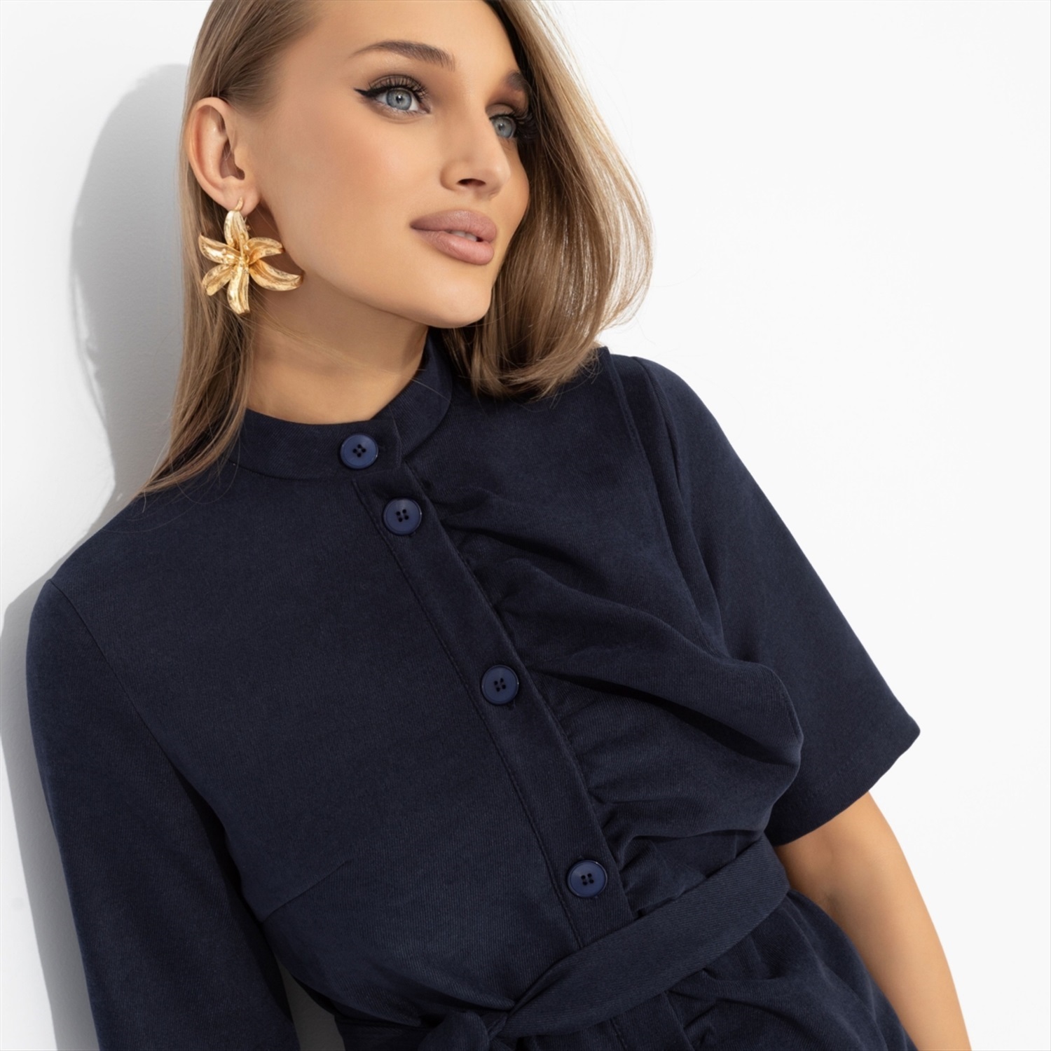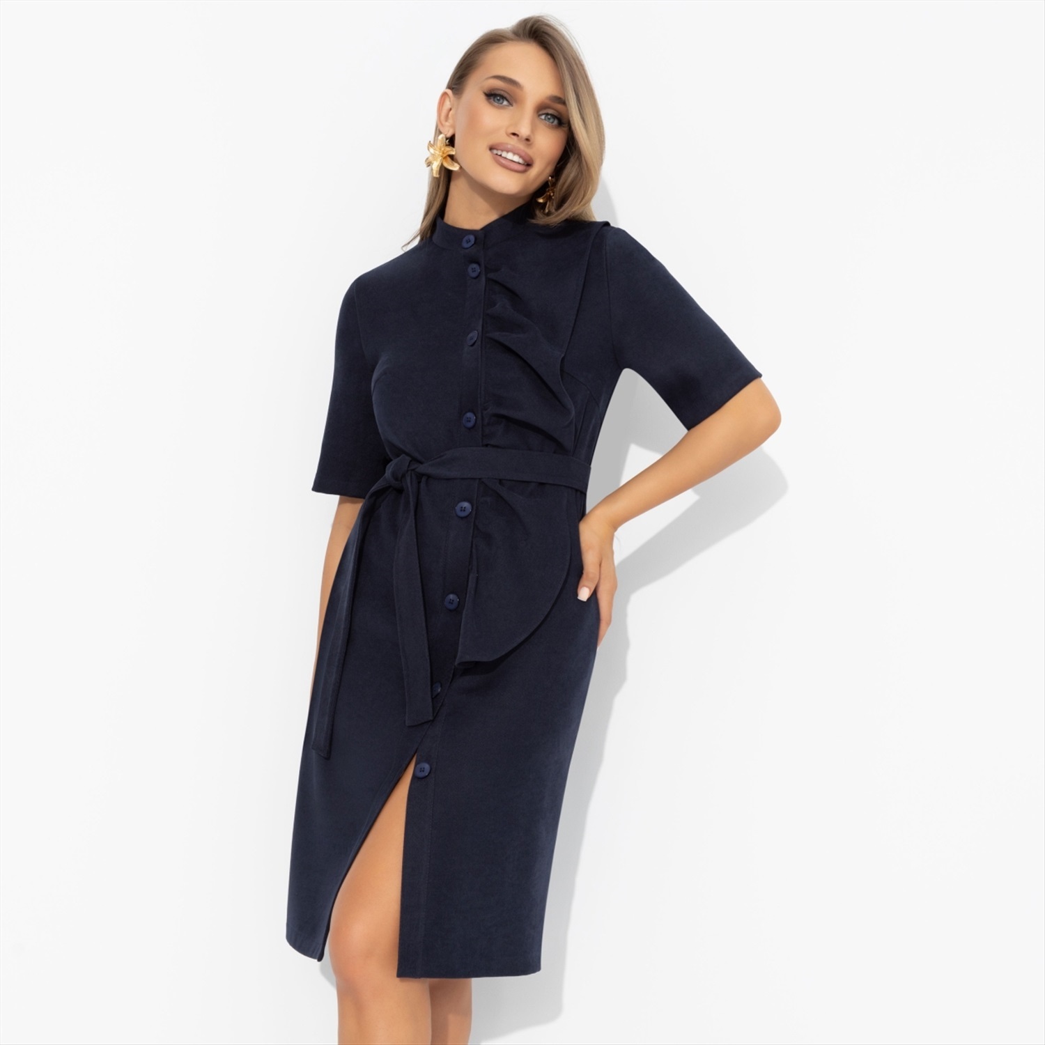 Быть таинственной – значит исчезать с его радаров в самый ответственный момент. Например, вместо ужина с его серьезными коллегами ты отправилась в кино с подругами, надев платье от ЧАРУТТИ. Создала вау-эффект. Платье в длине до колена. Линия пуговиц украшена объемным декором – рюшей. Есть пояс в тон изделия в комплекте. Платье с карманами. Материал невероятно приятный на ощупь.