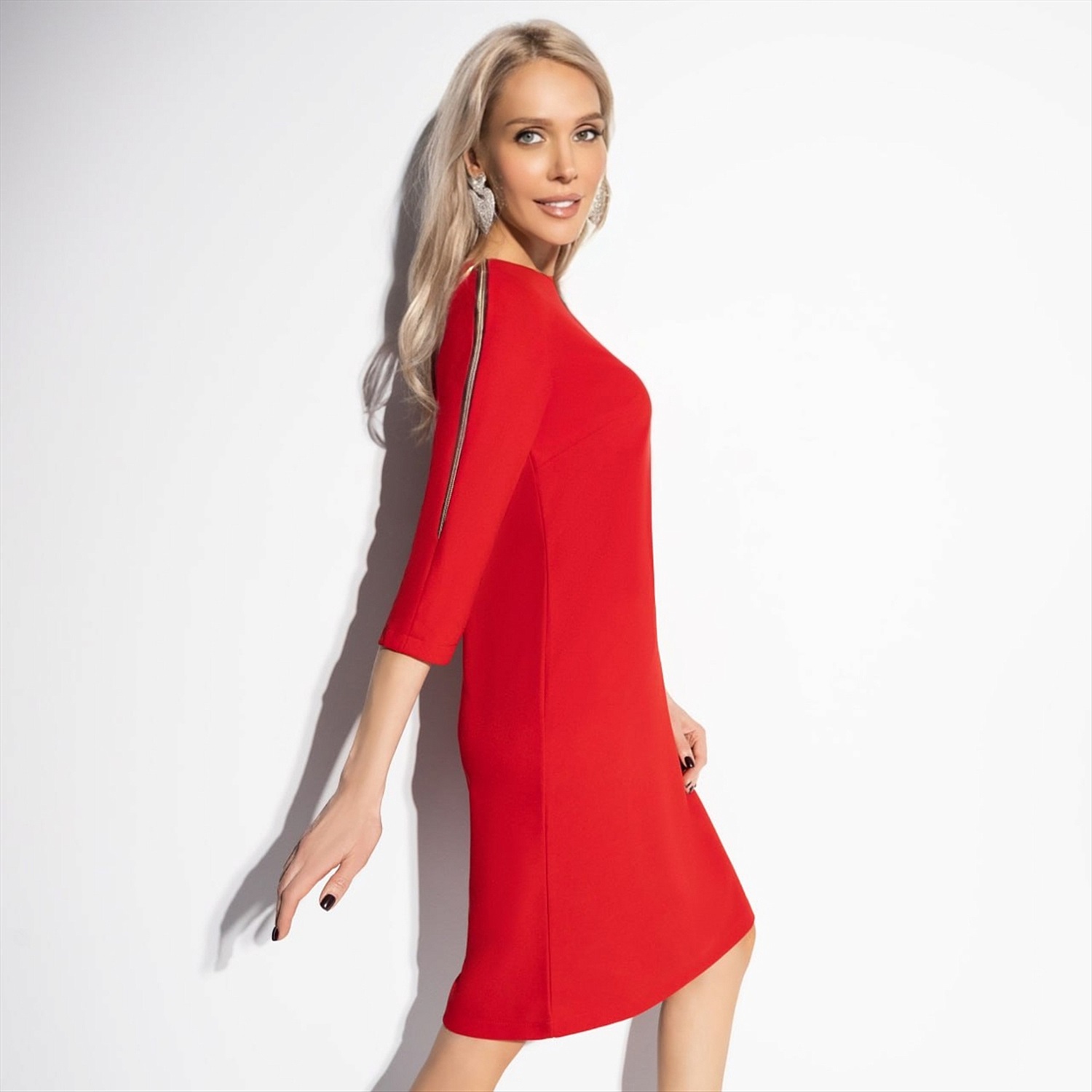 Красное платье, которое работает как магнит. Оно оживляет кожу, усиливает взгляд, настраивает на волну притяжения. Универсальный выразительный силуэт платья украсит обладательницу любой фигуры. В нём вы будто светитесь изнутри, притягивая любовь взглядом, движением, дыханием. В нём вы не ищете любовь ‒ любовь сама ищет вас. Платье прямого силуэта с акцентными рукавами. Рукав с декоративной молнией, чуть заужен.