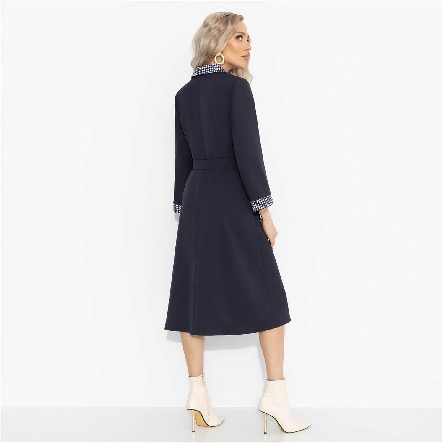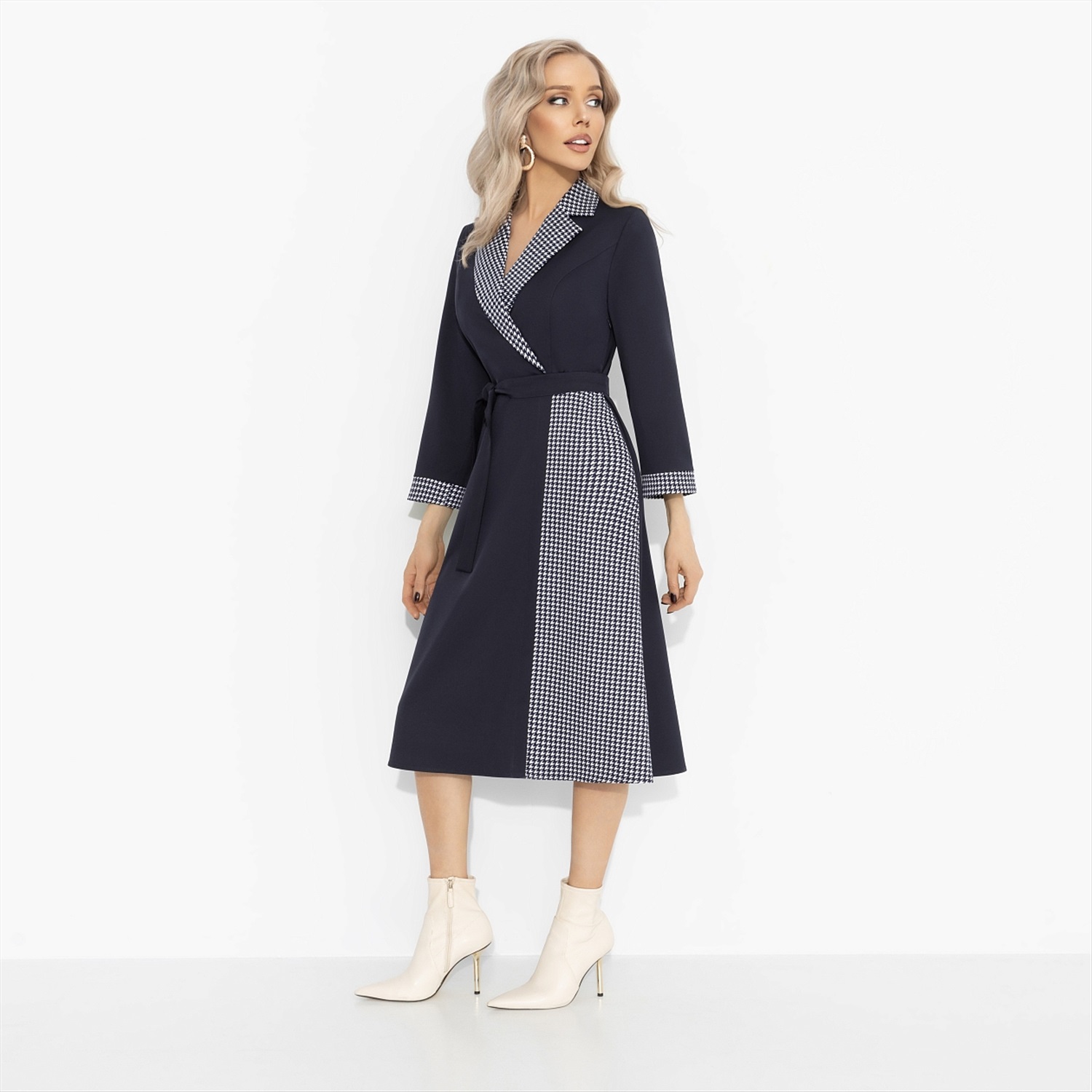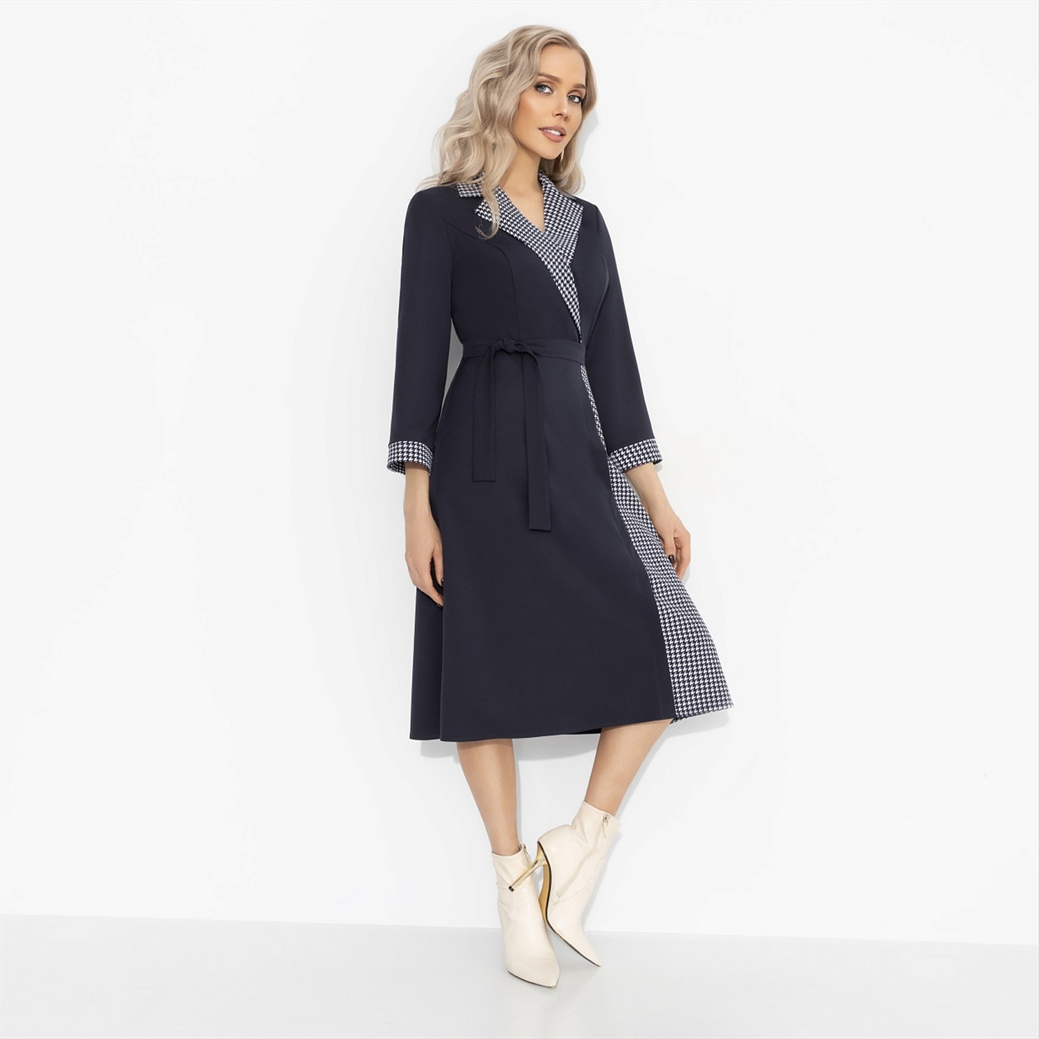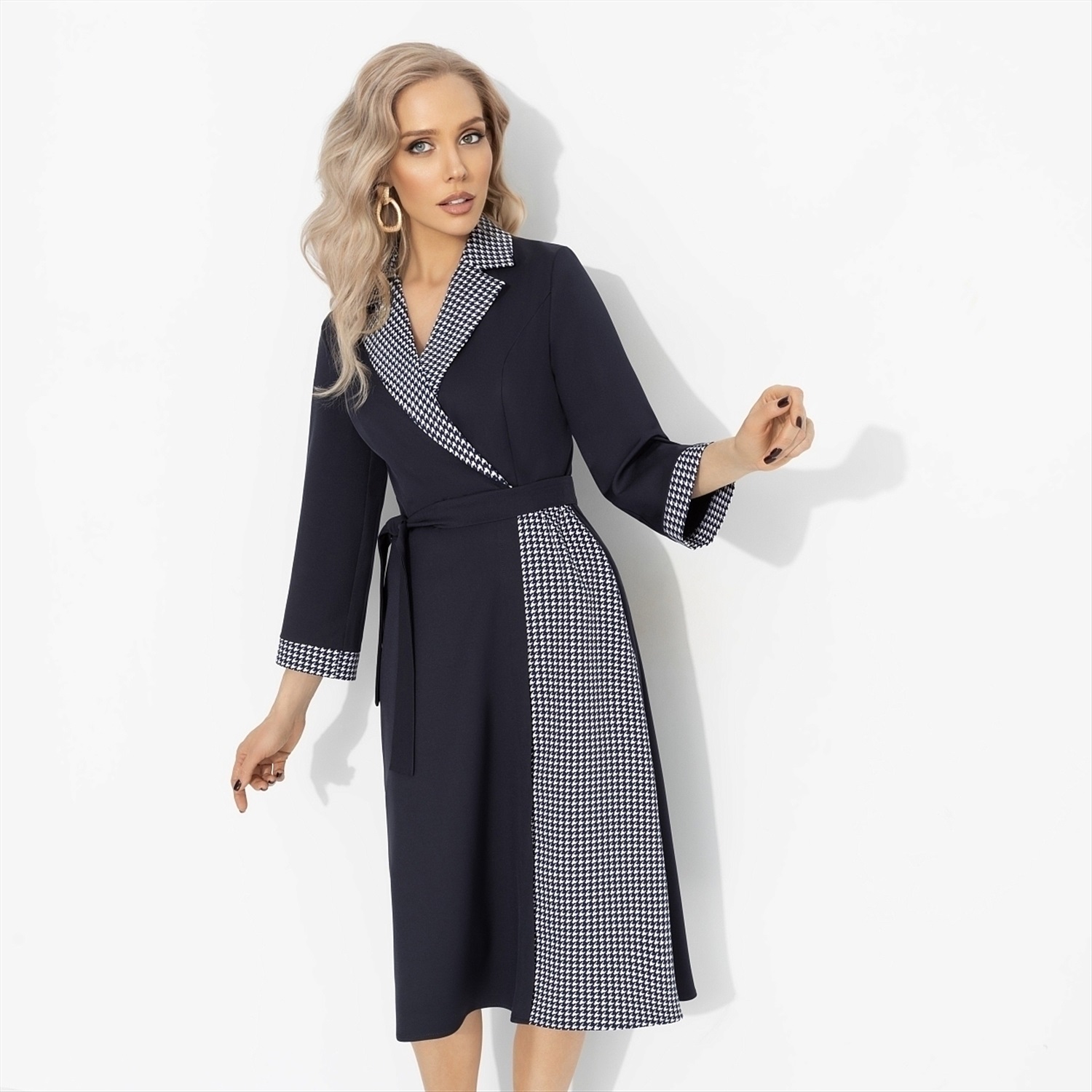 Вам выписан штраф за превышение дозы красоты! Идеальная посадка и благородная «гусиная лапка» – и каждый твой шаг тянет на превышение допустимого лимита обаяния. Пожалуй, спрведливым наказанием будет море вопросов «Откуда это платье?», на которые ты ответишь: «Из ЧАРУТТИ!». Лаконичный А-силуэт с акцентом в зоне талии. Имитация запаха. Идеально для офиса и важных встреч.