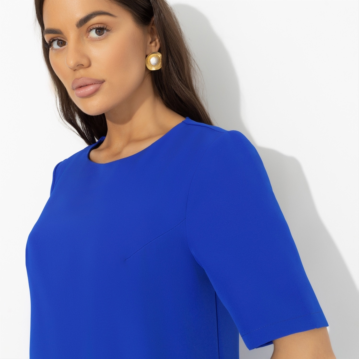 Всем известно, что итальянцы плохие водители и часто нарушают правила дорожного движения. В платье CHARUTTI лучше держаться подальше от автомобилей, чтобы не стать причиной чрезвычайного происшествия. Платье в длине до колена прямого силуэта в цвете electric blue. Есть карманы. Изделие без застежек. Хорошо сморится на любом типе фигуры.