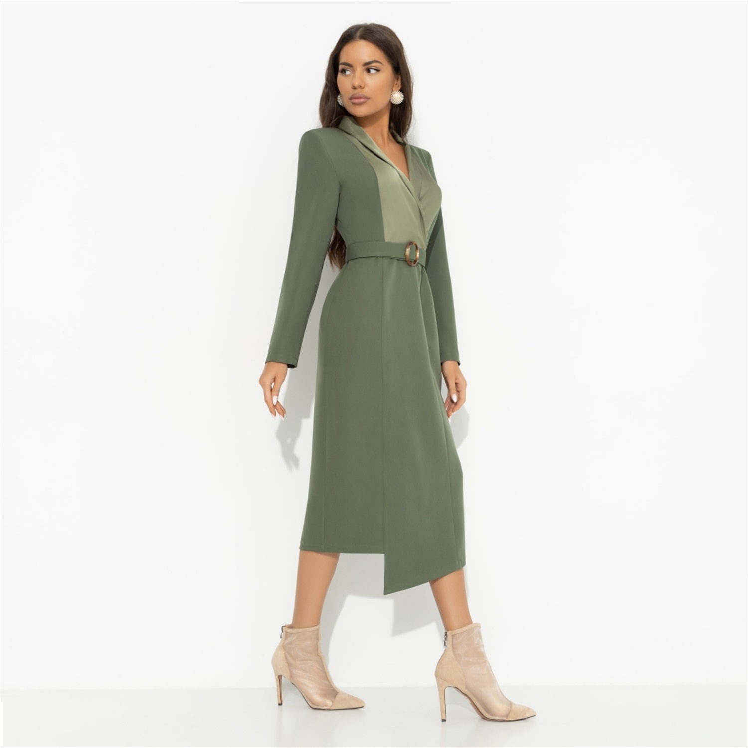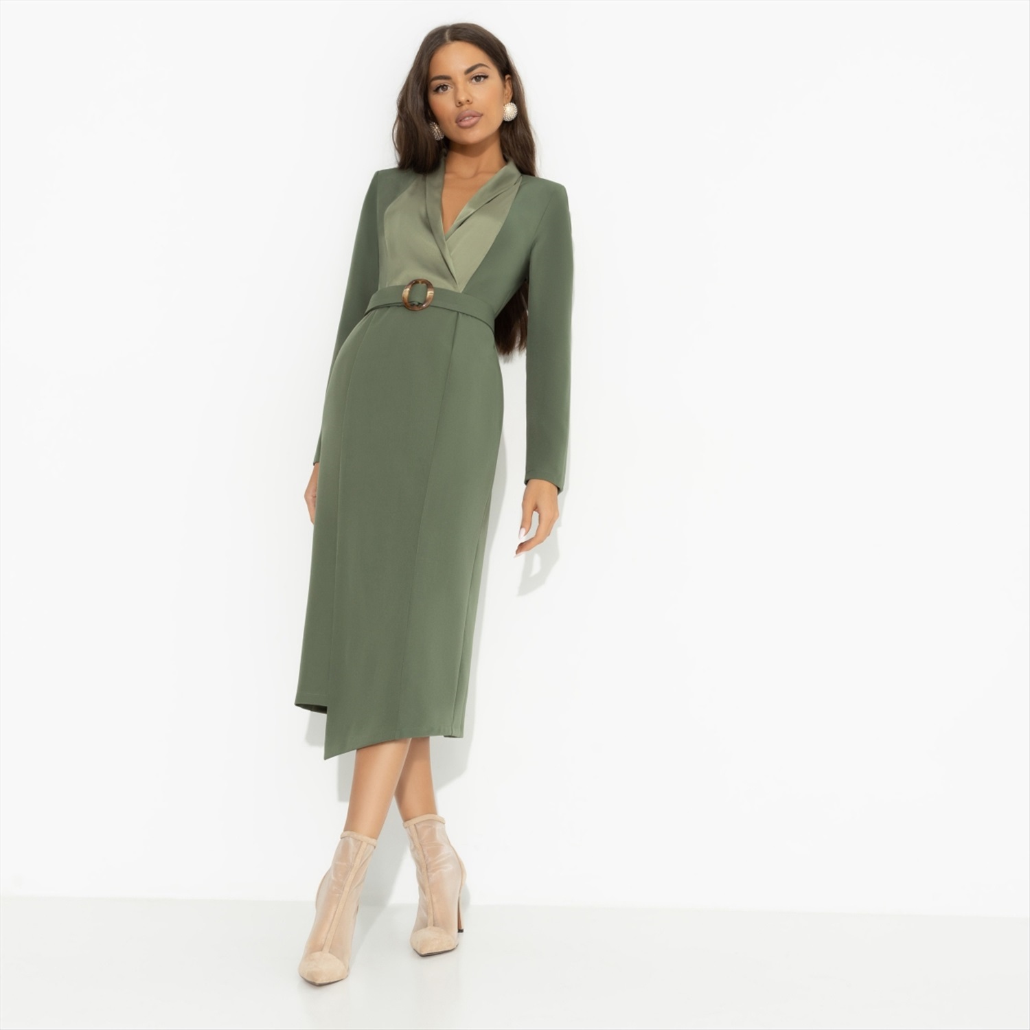 Одним из первых выходов Меган Маркл в качестве герцогини был выход в силуэтном зеленом платье. Элегантное и роскошное. Платье, в котором можно пройти путь от актрисы до королевской особы. Платье в длине миди приталенного силуэта. Лацканы из акцентной ткани. Пояс в комплекте. Изделие с подплечниками. Ассиметричный подол. Есть деликатный разрез по спинке изделия.