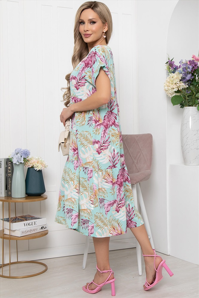 Платье с воланом - символ женственности, изящества и романтичности. Такое платье отлично подойдет на каждый день. Свободный крой позволит скорректировать фигуру, скрыть недостатки. Рукав укороченный, втачной, дополнен манжетой.