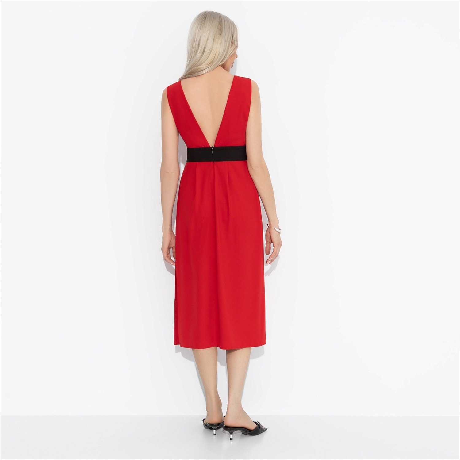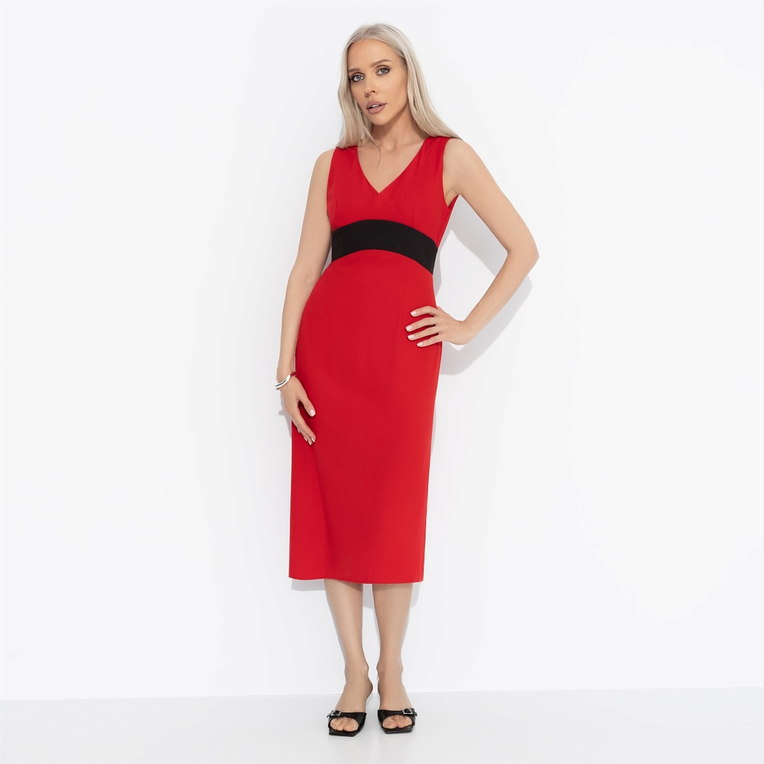 ТН ВЭД: 6204430000; Состав: «Барби» (60% полиэстер, 37% вискоза, 3% спандекс); Плотность ткани: Средняя; Тип ткани: Текстиль; Вид застежки: Молния; Дополнительный цвет ткани: Черный; Карманы: Нет; Основной цвет ткани: Красный; Отрезная талия: Есть; Подклад: Нет; Резинка по талии: Нет; Рисунок/раппорт: Нет, все изделия идентичны; Сезон: Лето; Силуэт: Приталенный; Стиль: Нарядный