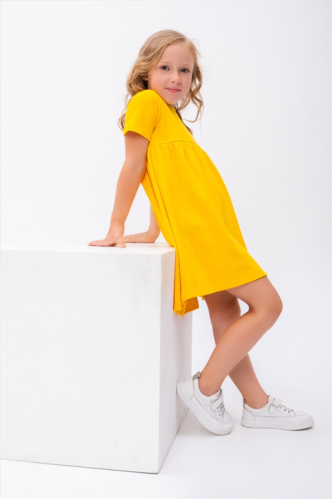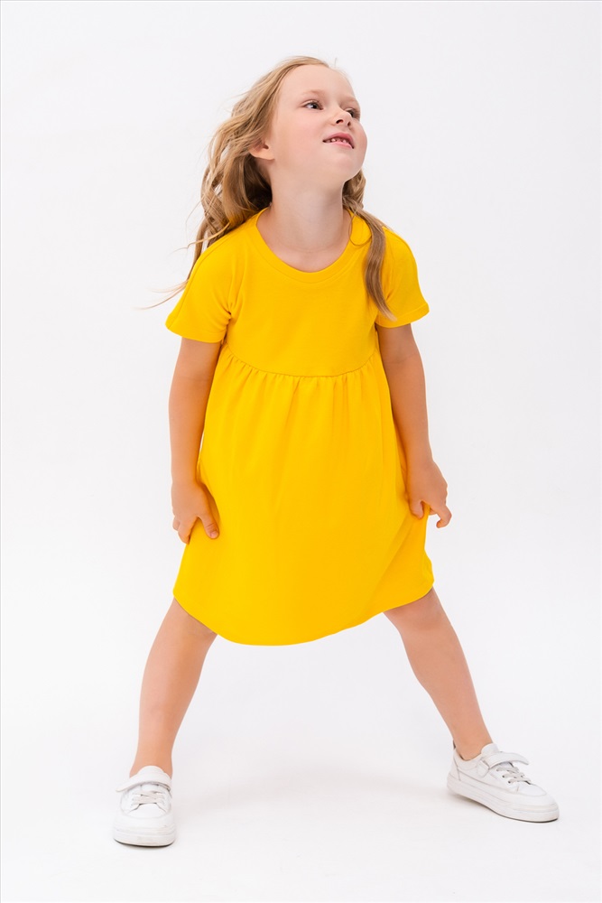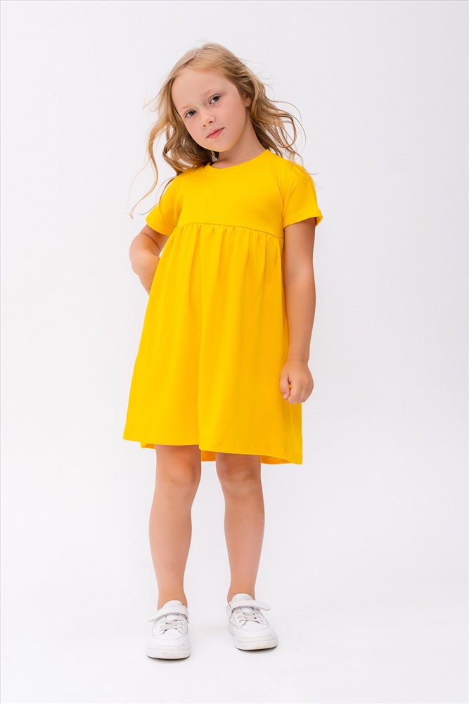 Состав: 100% Хлопок Модель: Платье Солнышко Желтое Тип товара: платье Материал: интерлок | интерлок Бренд: GOLD Длина: длинный Карман: без карманов Рисунок: однотонные Рукав: короткий рукав Сезонность: лето | весна Силуэт: свободный Стиль: повседневный Воротник: без воротника Застежка: без застежки Легкое платье девочки из качественного трикотажного полотна - интерлок. Модель подойдёт и для лета, и для садика. Легко стирается, не вытягивается, не линяет, не закатывается. Благодаря свободному крою, может по мере роста ребёнка, носиться как туника. Таблица размеров и веса