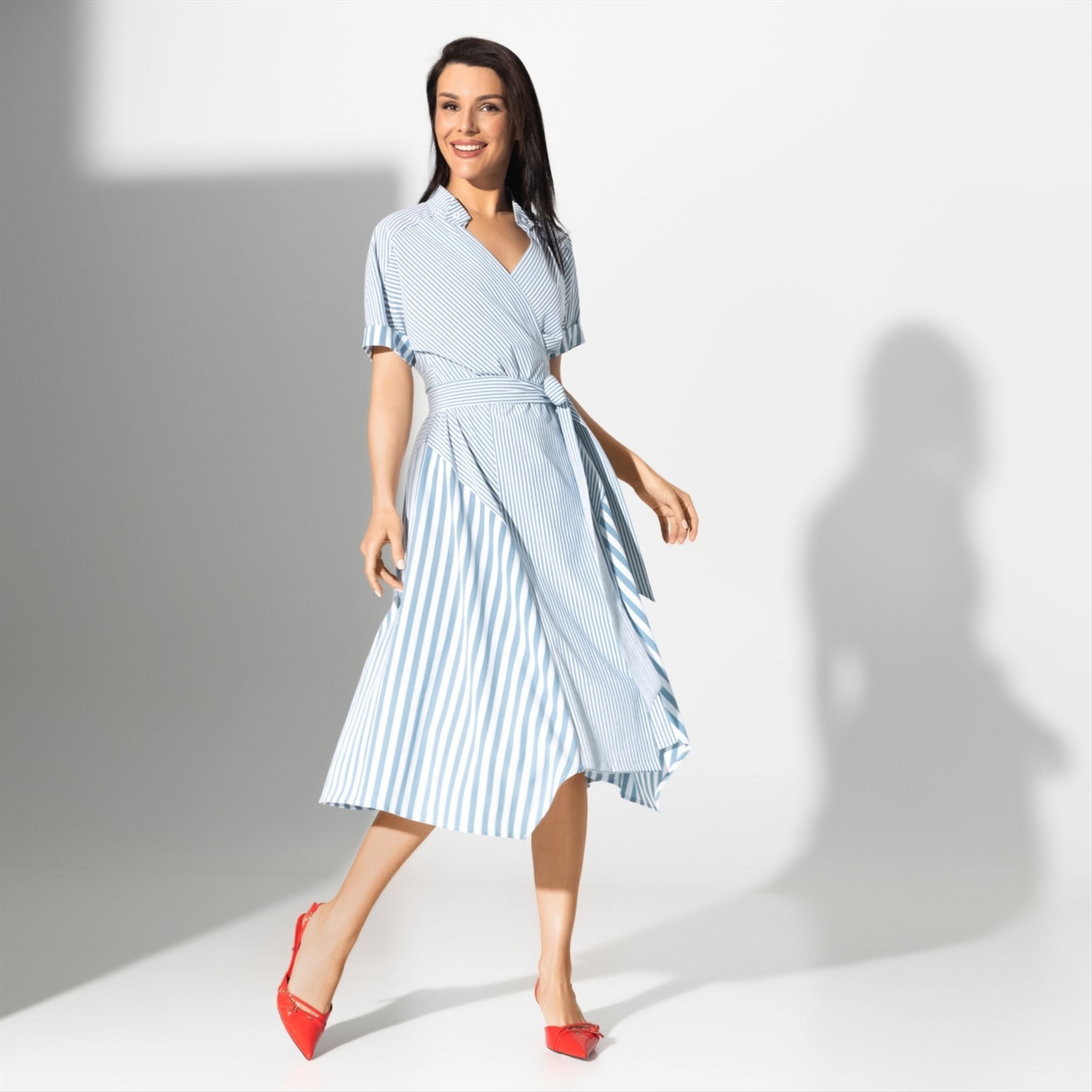 Аристократическое настроение платья из коллекции PREMIUM строится на безупречном классическом крое, плотной ткани высокого качества и трендовой комбинации двух видов полоски. Сдержанно и прекрасно.