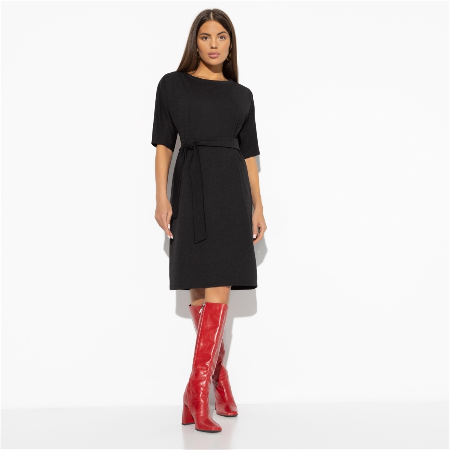 Софи Лорен утверждала, что нет ничего привлекательнее, чем черное платье-футляр. Подчеркивает достоинства и делает заметным детали вашего образа – выбившийся из пучка локон, игривый взмах брови и острое словцо, которое всегда у вас припасено. Платье прямого силуэта. Ткань тянется. Есть пояс в комплекте.