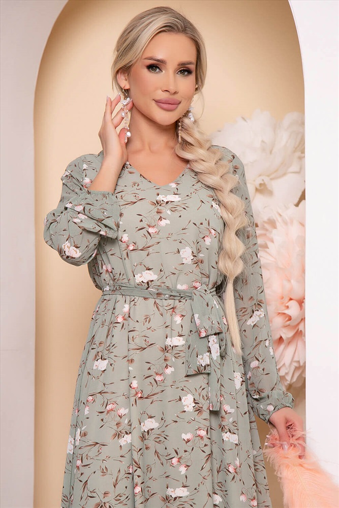 Шифоновое летящее платье идеально подчёркивающее Вашу женственность. Платье свободного силуэта на подкладке. Мягкий V-образный вырез горловины красиво открывает зону декольте и Ваши ключицы. Длинный, втачной рукав, низ на резинке. Пояс из основной ткани входит в комплект.