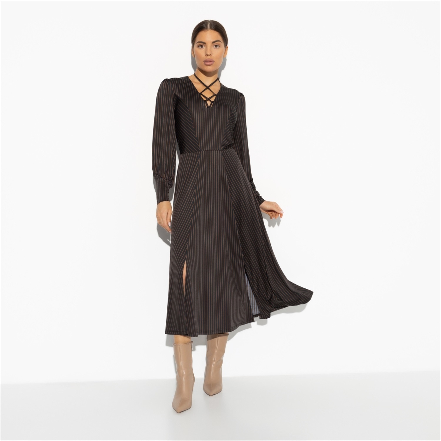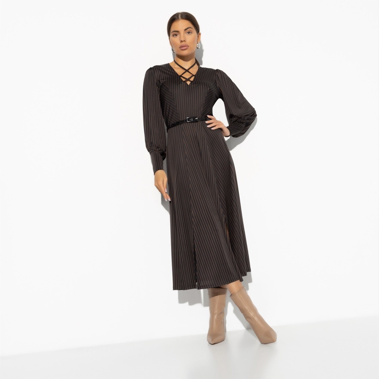ТН ВЭД: 6104430000; Состав: Трикотаж «валенсия» (95% пан, 5% спандекс); Плотность ткани: Средняя; Тип ткани: Трикотаж; Вид застежки: Нет; Карманы: Нет; Основной цвет ткани: Коричневый; Отрезная талия: Есть; Подклад: Нет; Резинка по талии: Есть; Рисунок/раппорт: Нет, все изделия идентичны; Сезон: Демисезон Жизнь без десертов невозможна. Есть способ самой стать лакомым кусочком. Притягательной, манящей, поднимающей настроение. Без вреда для фигуры. Платье приталенное в длине миди. Без подклада. Невысокие разрезы по передней части изделия. Пояс в комплекте. Платье «Высокие требования» из трикотажа «валенсия» идеально подходит для тех, кто хочет подчеркнуть свою индивидуальность и стиль. Это изделие — настоящая находка для оптовых покупателей, стремящихся предложить своим клиентам нечто особенное. Приталенный крой и миди-длина делают платье универсальным выбором для различных мероприятий — от деловых встреч до романтических свиданий. Безупречный дизайн с аккуратными разрезами спереди и стильным поясом в комплекте дарит кокетливость и уверенность в каждом шаге. Это платье невозможно не заметить, ведь оно словно десерт для глаз, способный поднять настроение и подчеркнуть достоинства фигуры. Для оптовых покупателей это платье станет настоящим хитом продаж благодаря своему уникальному дизайну и качеству ткани. Трикотаж «валенсия» известен своей мягкостью и эластичностью, что обеспечивает комфорт даже при длительной носке. Он не мнётся и сохраняет форму, что делает его идеальным для активной повседневной жизни. Оптовая покупка этого платья позволит розничным магазинам и интернет-платформам предложить своим клиентам трендовую вещь, которая будет востребована в любое время года. Стильный пояс в комплекте добавляет изысканности и позволяет каждой женщине подчеркнуть свою талию. Покупая платья «Высокие требования» оптом, вы получаете не только качественный товар, но и возможность предложить вашим клиентам нечто большее — ощутить себя в центре внимания. Это платье словно создано для того, чтобы делать женщин счастливыми и уверенными в себе. Сочетание современного дизайна и классического кроя делает его идеальным выбором для тех, кто ценит моду и комфорт. Дайте вашим покупателям шанс почувствовать себя на высоте, добавив это платье в ваш ассортимент. Ведь жизнь без ярких впечатлений невозможна, и это платье — способ подарить себе и другим эти незабываемые эмоции.