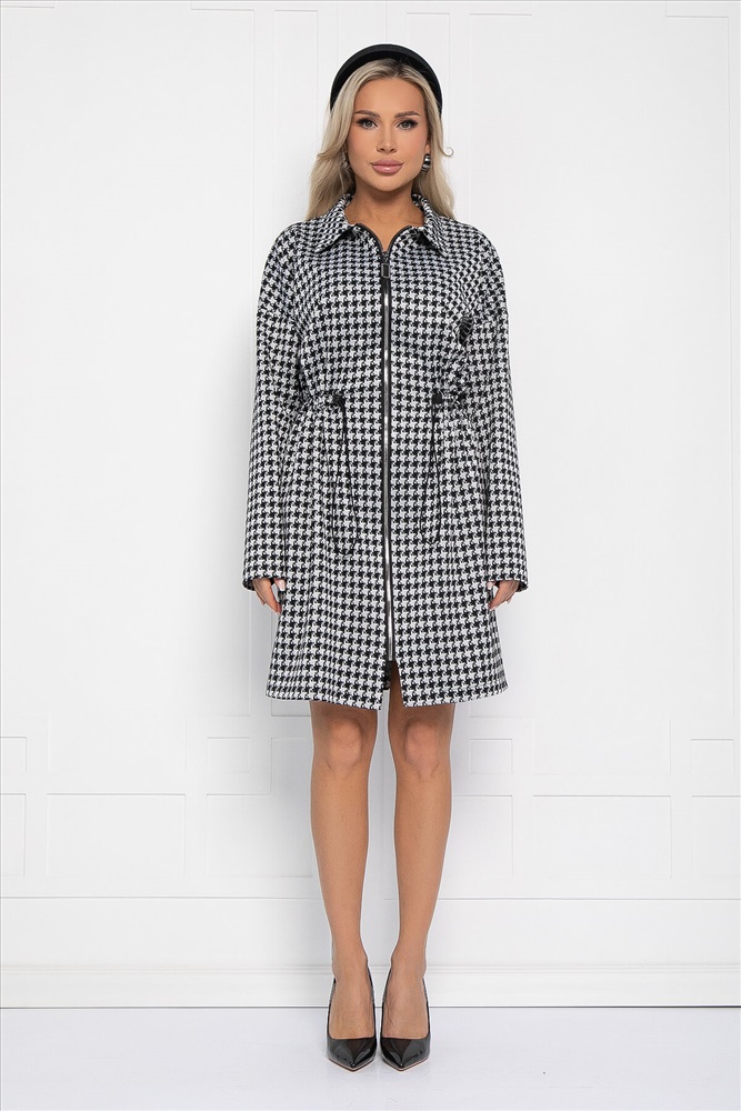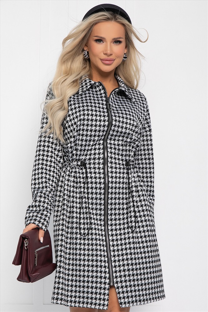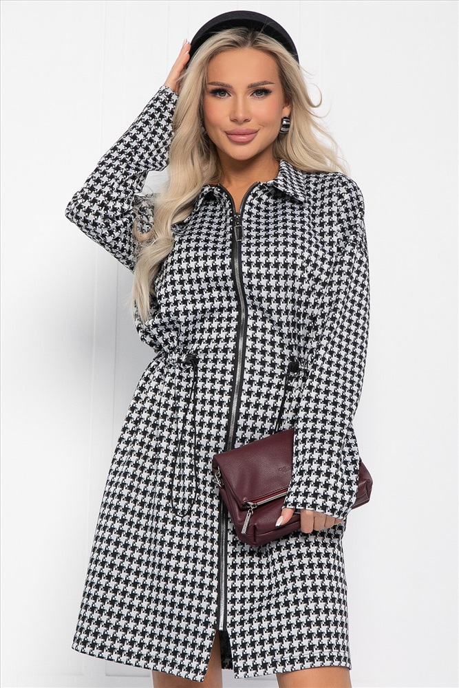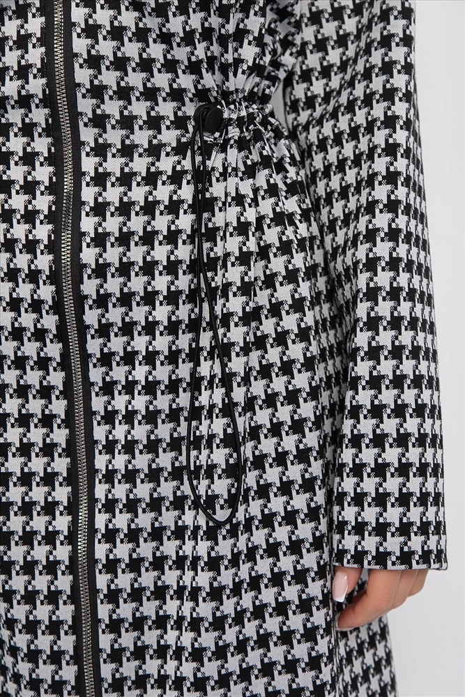 Платье, которое непременно привлечёт взгляды своим неповторимым дизайном и станет идеальным выбором для тех, кто ценит современные и актуальные образы. Элегантный воротник и застёжка на молнию придают ему утончённый вид. А спущенные плечи добавляют лёгкости и расслабленности. Кулиска с резинкой и регулятором на талии позволяет идеально подогнать силуэт под фигуру. Это платье станет универсальным и стильным элементом вашего гардероба, подчёркивая вашу индивидуальность.