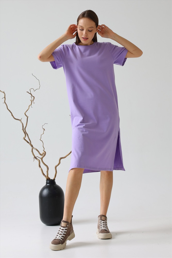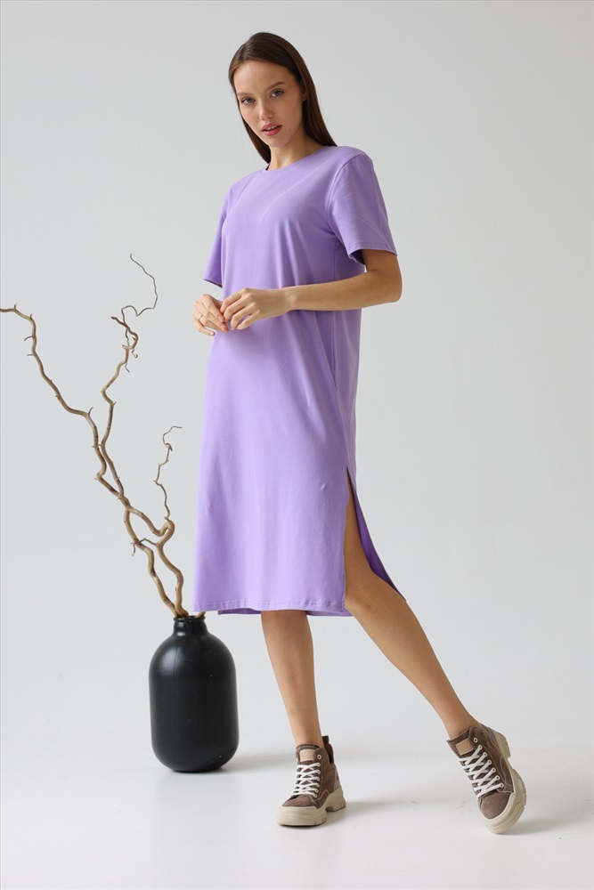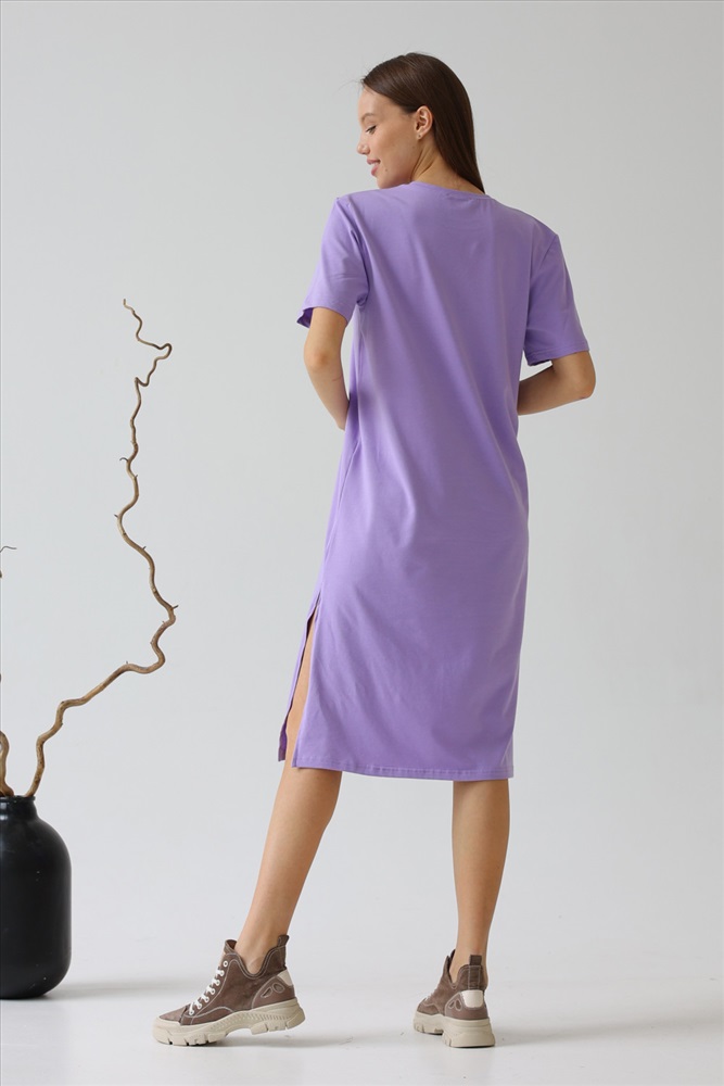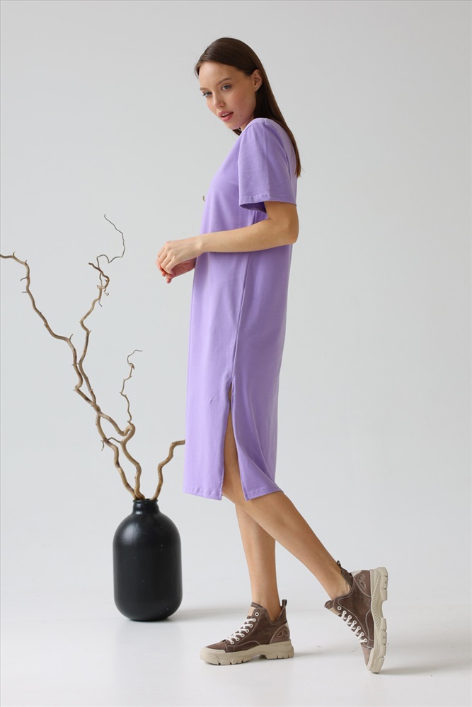 Модное платье прямого силуэта длиной ниже колена с высокими разрезами по бокам из лёгкого хлопка с лайкрой с эффектом «велюра» - тренд этого сезона. Мягкий трикотаж, приятный к телу и свободный крой, — это то, что вам нужно, чтобы выглядеть неотразимо. Это платье станет идеальным дополнением вашего базового гардероба. Легкий материал прекрасно "дышит" и хорошо впитывает влагу. Для изготовления изделий “SoloMio“ используются только самые лучшие и качественные материалы.