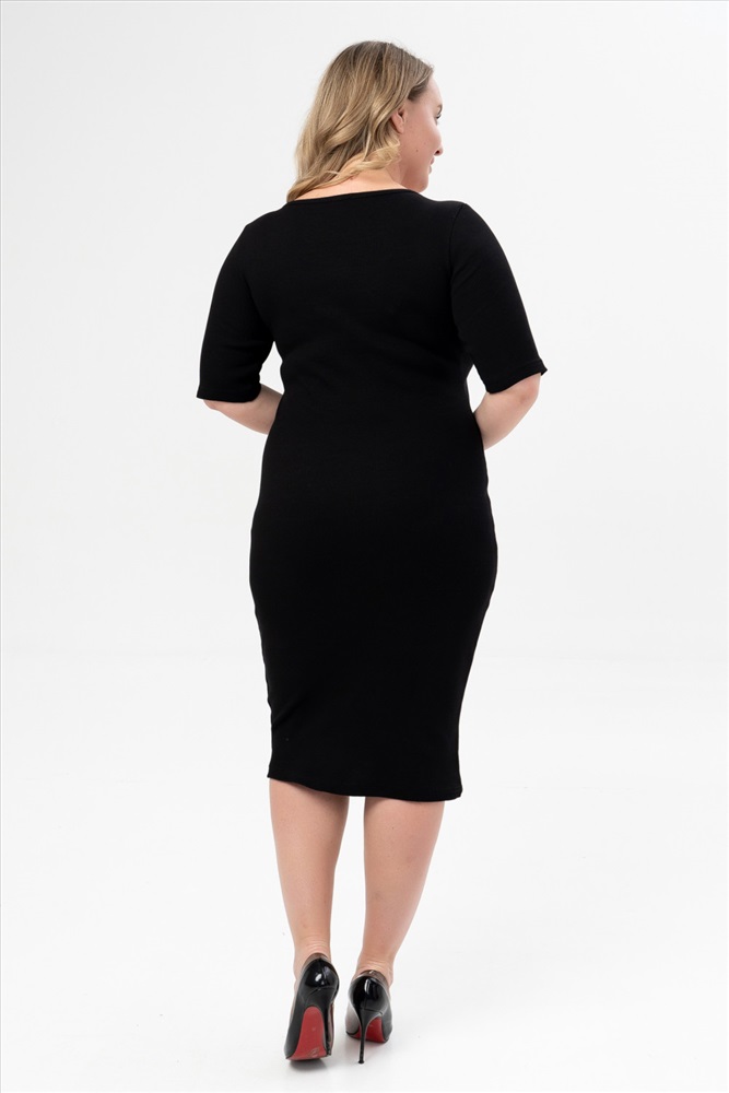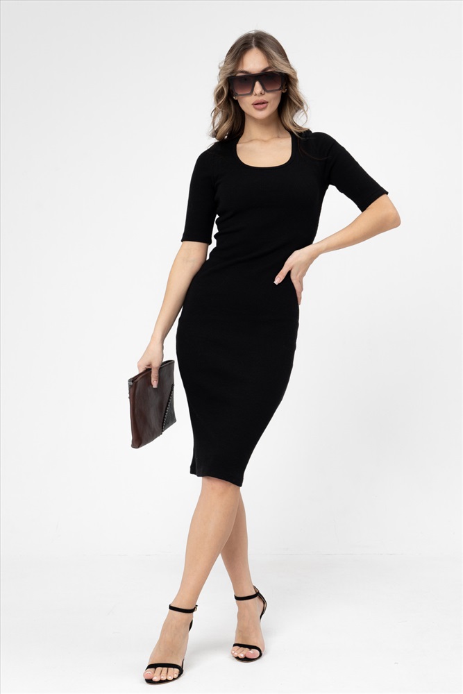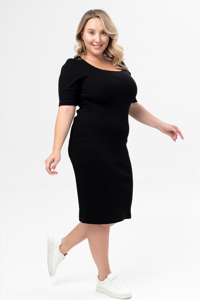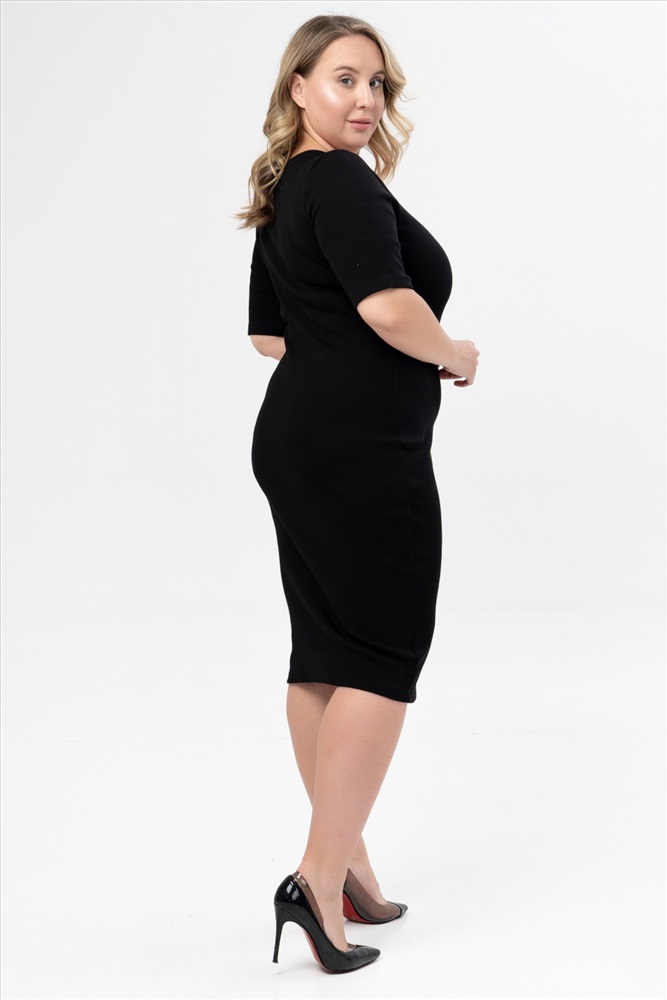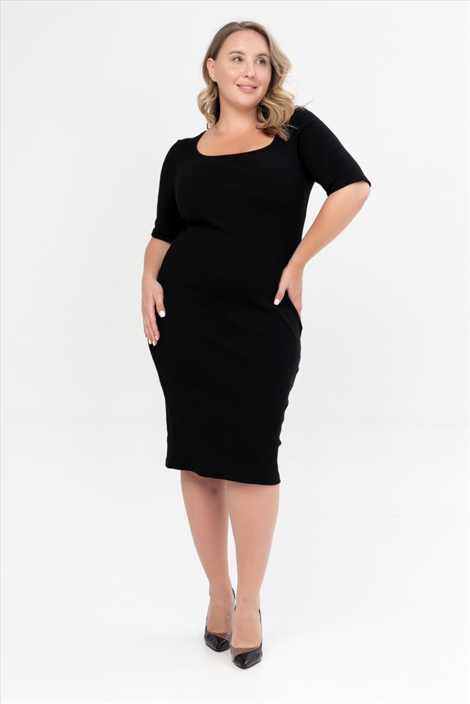Производитель: POL`MOTIVE Код товара: 22-376L11-WB Состав: х/б - 95 %; эл. - 5 % Вид полотна: кашкорсе цвет: черный Коллекция: BASE Платье из хлопкового трикотажа кашкорсе с лайкрой. Красивый, глубокий вырез горловины, длина рукава до локтя. Оно идеально облегает фигуру, выделяя все её достоинства и подчёркивая ваш аккуратный силуэт. В нём нет разрезов и глубокого декольте, но его сексуальность зашкаливает и без этого. Изюминкой этого платья является его длина чуть ниже колена, которая подойдет девушкам с любым ростом. Наденете вы кроссовки или каблуки – неважно. В нём вы всегда будете выделяться, ведь красота в простоте. Все эти детали делают эту модель особенной привлекательной, выглядит очень эффектно и стильно. Быть модной с заботой о себе можно! Рост модели на фотографии 176 см. размер одежды 44 Длина платья 42 размер 103см. 44 размер 103см. 46 размер 105см. 48 размер 105см. 50 размер 106см.