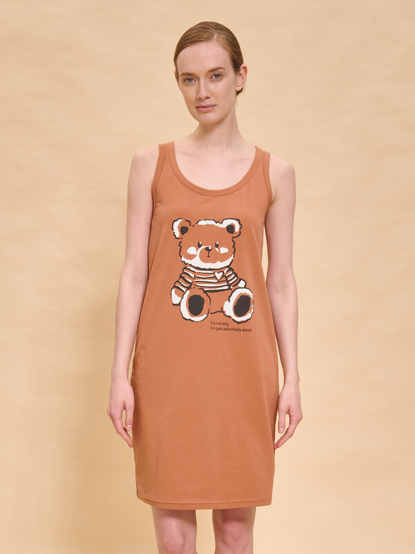 Состав: 95%хлопок 5%эластан Домашнее женское платье майка миди. Платье трикотажное свободного прямого кроя на широких бретелях подойдёт для любой фигуры. Платье-футболка с принтом – базовый элемент женского гардероба. Повседневное платье выполнено из ткани с высоким содержанием качественного хлопка – оно мягкое и хорошо пропускает воздух, позволяя коже дышать. Эластан помогает модели надолго сохранить первоначальную форму. Модель украшена милым, «няшным» принтом в виде плюшвого медвежонка в тельняшке, надписи переводятся: «я не застенчивая», «просто избирательно общительна» — побалуйте своего внутреннего ребёнка. Принт эластичный и мягкий, великолепно переносит многочисленные стирки. Свободное платье подходит как женщинам, так и девушкам, девочкам-подросткам. Платье майка свободное идеально для носки дома, комфортного сна, пижамной вечеринки, отдыха. Платье майка также подходит для повседневного летнего гардероба, прогулок, отдыха, пляжа. Кроме того модель удобна для беременных. Помните о правильном уходе за изделием: рекомендуется стирать при температуре не выше 30 °C, без предварительного замачивания, с изнанки. Это поможет сохранить качество и цвет платья на длительное время. Не забывайте о выборе правильного размера. Используйте таблицу размеров на фотографии, чтобы выбрать подходящий для себя вариант. Обратите внимание, что цвет товара на экране вашего устройства может отличаться от реального. Комментарии к товару