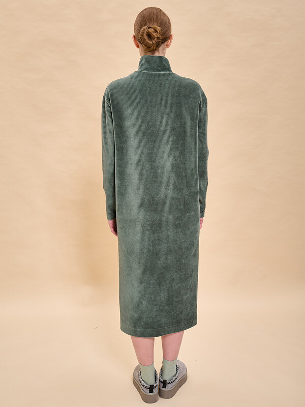 Женское вельветовое платье длины миди. Длинное трикотажное платье свободного силуэта комфортно в повседневной носке, не стесняет движений. Прямое платье такого кроя скрывает недостатки фигуры и подчеркивает достоинства. Изделие с высоким воротником-стойкой, который защитит от холода и ветра. Не нужно дополнительно надевать шарф. У горловины застёжка на короткую молнию — один из модных трендов. Вдоль молнии отделка из гладкой курточной ткани — сочетание разных фактур актуально в этом сезоне. Платье с разрезами по бокам — ваши движения свободны. Модель лаконичного дизайна, без принта. За ней просто ухаживать. В составе ткани преобладает качественный хлопок — изделие мягкое и приятное на ощупь. Благодаря полиэстеру и эластану платье износостойкое, сохраняет превосходную форму на протяжении долгого времени. Трикотажное платье миди представлено в элегантном и универсальном сером цвете. Размерная линейка:  XS (42); S (44); M (46); L (48); XL (50). Модель идеальна как для женщин, так и для девушек и девочек-подростков с разными типами фигуры. Отличное повседневное платье для работы, учёбы и отдыха. Подходит для зимы и демисезона (осени и весны). Модное платье — это прекрасный подарок сестре или подруге на Новый год или День рождения.