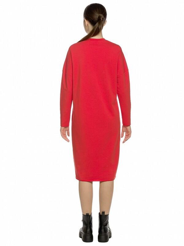 Платье женское из футера силуэта кокон с сильно опущенной линией плеча, горловиной из рибаны и устойчивым принтом из золота. По рукавам и низу изделия актуальный элемент street style открытый срез и декоративная строчка, которые придают легкость изделию. Перевод Делай больше того, что делает тебя счастливым. Новая я.