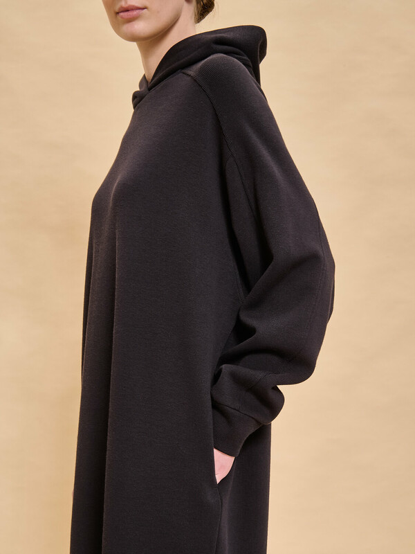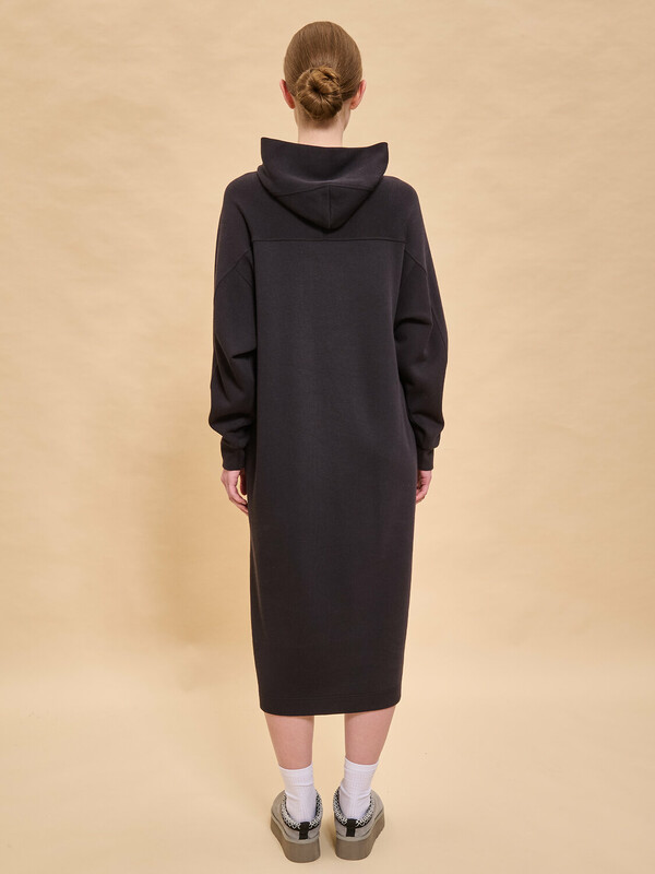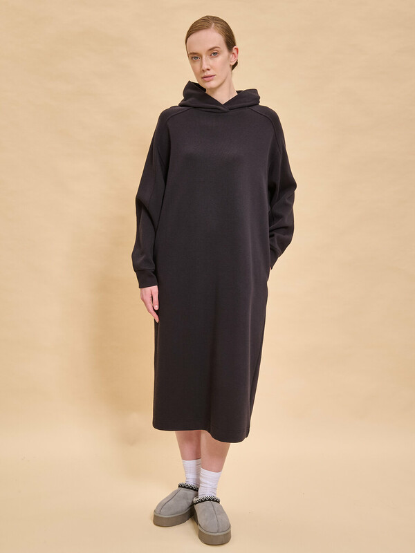 Платье худи женское актуальной длины миди. Платье комфортного свободного силуэта-кокон со спущенным плечом подарит вам комфорт и станет стильным и уютным дополнением гардероба. Фишка модели — капюшон интересного кроя. Край капюшона заканчивается широкой планкой со сгибом — капюшон хорошо держит форму. Манжеты рукавов выполнены из основной ткани. В боковых швах удобные карманы. Интересная деталь — необычный, комбинированный крой рукавов. Модель неприхотлива в уходе. Платье теплое женское выполнено из ткани «французский рубчик» — в составе ткани преобладает высококачественный хлопок, ткань дышит и приятна на ощупь. Полиэстер помогает сохранить цвет и первозданный внешний вид надолго. «Французский рубчик» придаёт модели актуальный объём. Трикотажное платье миди выполнено в в универсальных цветах, легко сочетается с любой одеждой и аксессуарами. Модель лаконичного дизайна, без принта. Однотонное платье худи женское — базовый элемент повседневного гардероба. Платье из футера с начесом можно носить как зимой, так и весной/осенью (демисезон). Помните о правильном уходе за изделием: рекомендуется стирать при температуре не выше 30 °C, без предварительного замачивания, с изнанки. Это поможет сохранить качество и цвет платья на длительное время.