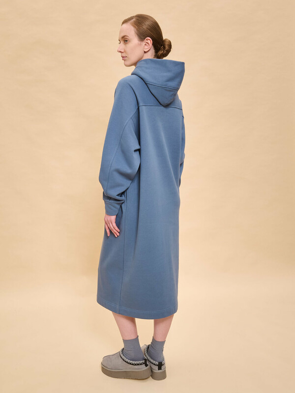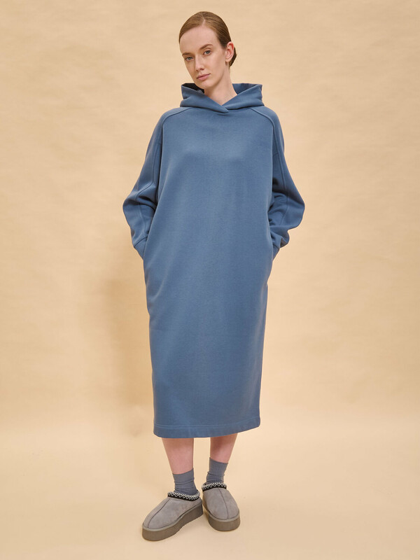Платье худи женское актуальной длины миди. Платье комфортного свободного силуэта-кокон со спущенным плечом подарит вам комфорт и станет стильным и уютным дополнением гардероба. Фишка модели — капюшон интересного кроя. Край капюшона заканчивается широкой планкой со сгибом — капюшон хорошо держит форму. Манжеты рукавов выполнены из основной ткани. В боковых швах удобные карманы. Интересная деталь — необычный, комбинированный крой рукавов. Модель неприхотлива в уходе. Платье теплое женское выполнено из мягкого футера с начёсом — в составе ткани преобладает высококачественный хлопок, ткань дышит и приятна на ощупь. Полиэстер помогает сохранить цвет и первозданный внешний вид надолго. Трикотажное платье миди выполнено в в универсальных цветах, легко сочетается с любой одеждой и аксессуарами. Модель лаконичного дизайна, без принта. Однотонное платье худи женское — базовый элемент повседневного гардероба. Платье из футера с начесом можно носить как зимой, так и весной/осенью (демисезон). Помните о правильном уходе за изделием: рекомендуется стирать при температуре не выше 30 °C, без предварительного замачивания, с изнанки. Это поможет сохранить качество и цвет платья на длительное время.