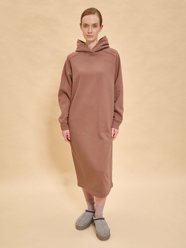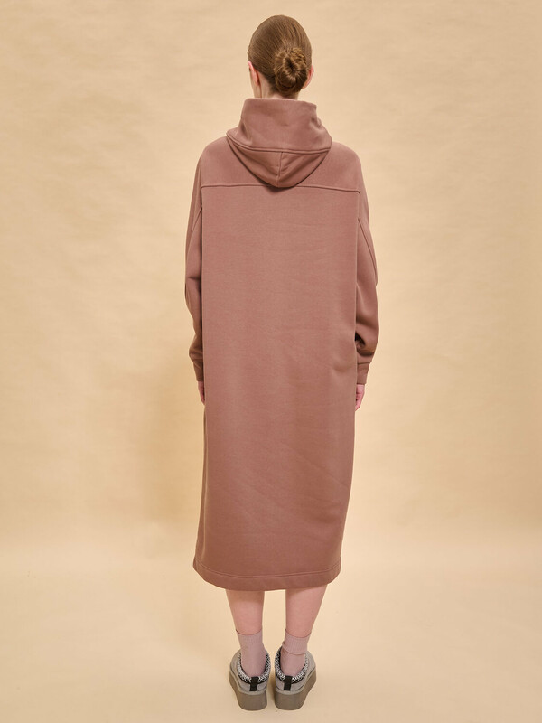Платье худи женское актуальной длины миди. Платье комфортного свободного силуэта-кокон со спущенным плечом подарит вам комфорт и станет стильным и уютным дополнением гардероба. Фишка модели — капюшон интересного кроя. Край капюшона заканчивается широкой планкой со сгибом — капюшон хорошо держит форму. Манжеты рукавов выполнены из основной ткани. В боковых швах удобные карманы. Интересная деталь — необычный, комбинированный крой рукавов. Модель неприхотлива в уходе. Платье теплое женское выполнено из мягкого футера с начёсом — в составе ткани преобладает высококачественный хлопок, ткань дышит и приятна на ощупь. Полиэстер помогает сохранить цвет и первозданный внешний вид надолго. Трикотажное платье миди выполнено в в универсальных цветах, легко сочетается с любой одеждой и аксессуарами. Модель лаконичного дизайна, без принта. Однотонное платье худи женское — базовый элемент повседневного гардероба. Платье из футера с начесом можно носить как зимой, так и весной/осенью (демисезон). Помните о правильном уходе за изделием: рекомендуется стирать при температуре не выше 30 °C, без предварительного замачивания, с изнанки. Это поможет сохранить качество и цвет платья на длительное время.