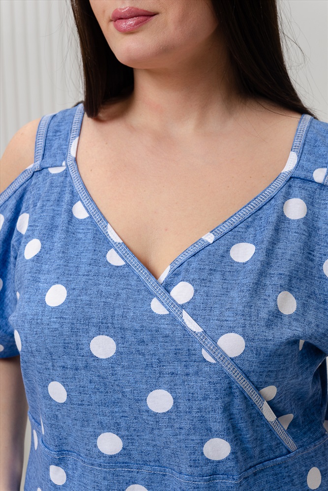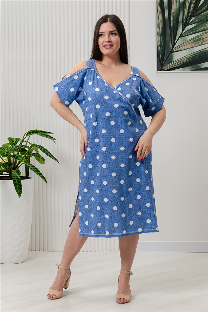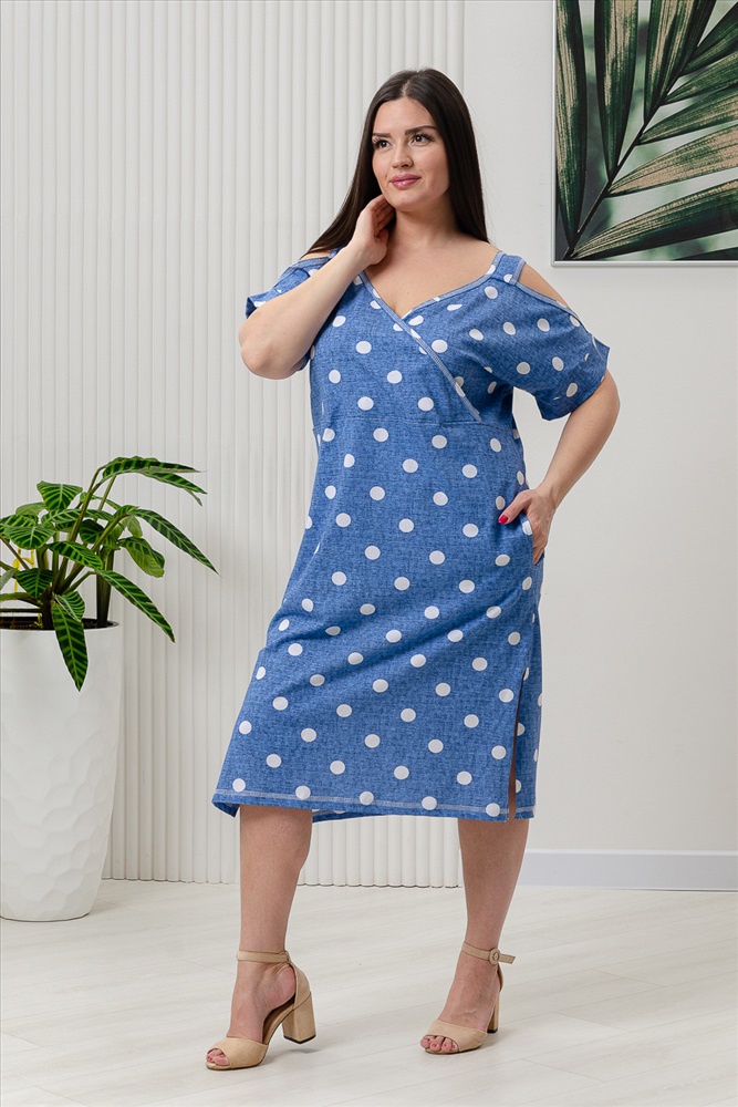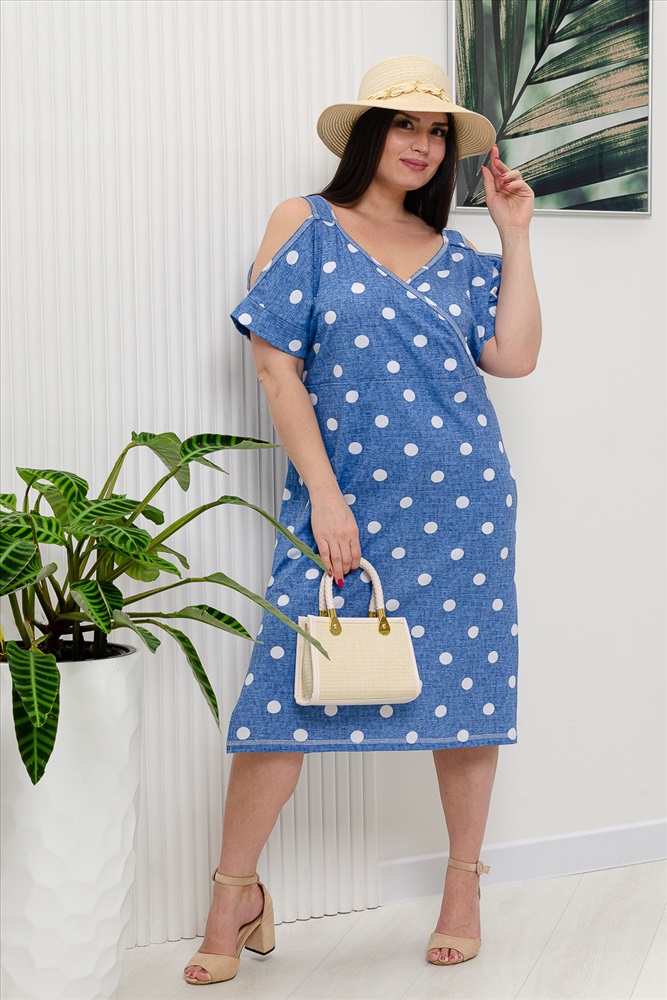 Состав: хлопок 100% Модель: Платье женское 9239 Тип товара: платье Материал: кулирка | кулирка Бренд: Натали Суслова Длина: средняя длина Карман: боковые Отделка: с карманами | с манжетами Рисунок: горошек Рукав: короткий рукав Сезонность: лето Силуэт: полуприлегающий Стиль: повседневный Воротник: без воротника Застежка: без застежки Платье женское полуприлегающего силуэта. Платье с запахом в верхней части. В нижней части на полочке внутренние фигурные карманы. На плечах широкие удобные бретели , переходящие в открытый цельнокроенный рукав на манжете. Таблица размеров и веса