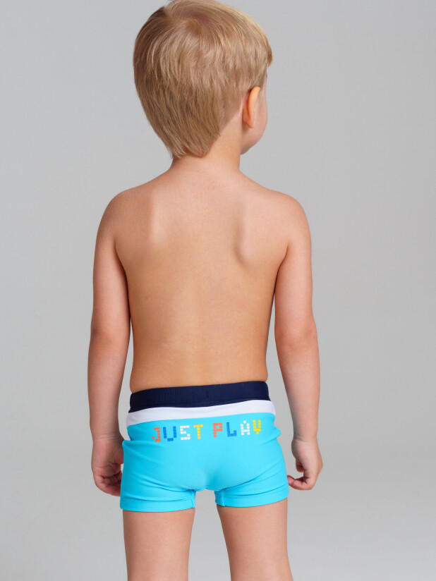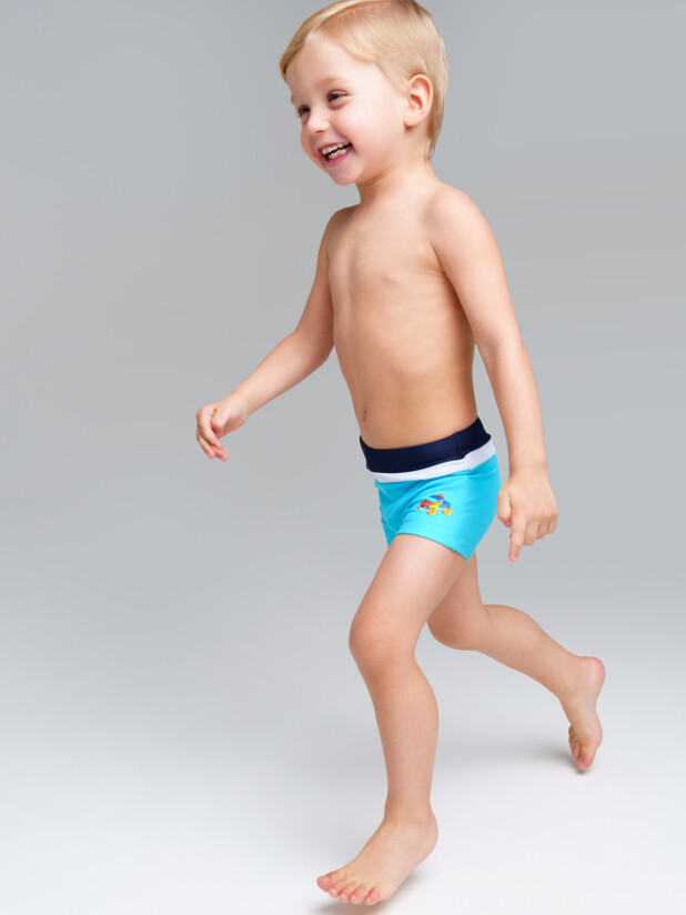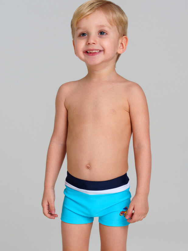 Плавки-шорты детские для мальчика. Плавки для пляжа и бассейна выполнены из быстросохнущего материала. Утяжка пояса шнурком. Благодаря хлор-защите и UF-защите ткань долго сохраняет первоначальный внешний вид.