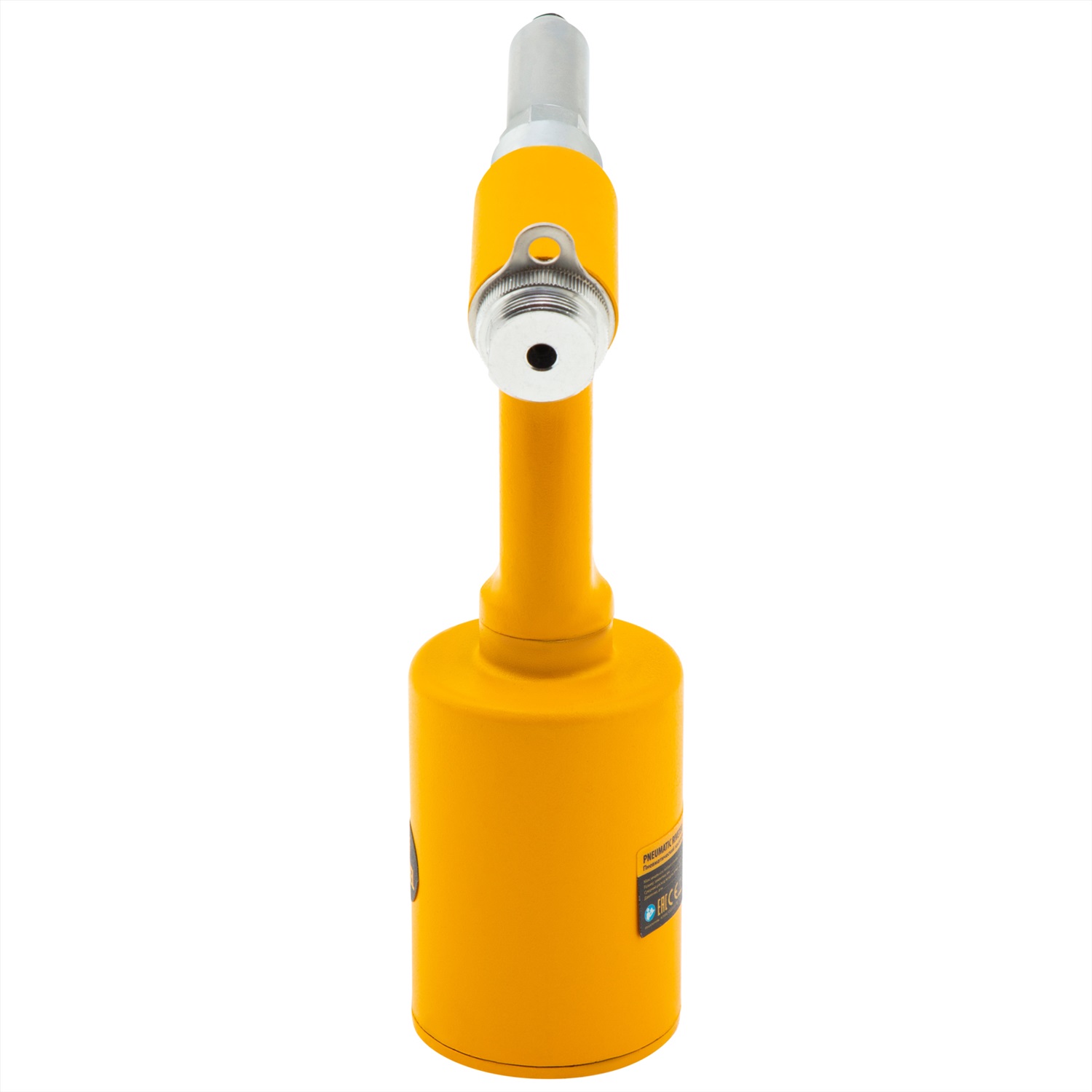 Пневматический заклепочник Denzel PR4 57479 значительно упрощает работу в автосервисах, домашних мастерских, на малых предприятиях и на ремонтных площадках. С его помощью можно без усилий скрепить листовой, профильный и панельный материал из пластика и металла.,Пистолет для вытяжных заклепок работает под давлением 6,3 АТМ и расходует всего 85 литров воздуха в минуту, поэтому для него подойдет компрессор средней мощности. В качестве оснастки используются заклепки размером 2,4-4,8 мм. В комплект поставки входит 4 насадки под заклепки размерами 2,4 мм, 3,2 мм, 4 мм и 4,8 мм.