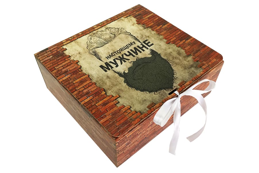 Коробка складная с лентой. Состав: кашированный микрогофрокартон.