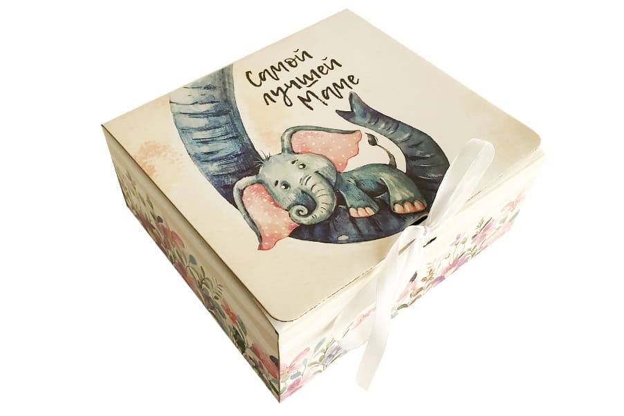Коробка складная с лентой. Состав: кашированный микрогофрокартон.